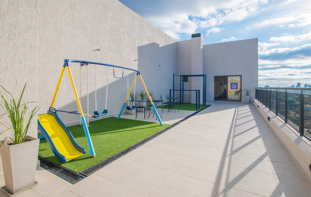 Relájate en este hermoso apartamento (60 m²) ubicado en un vecindario tranquilo, perfecto para familias, viajeros de negocios y trabajadores remotos por igual. Disfruta de las vistas desde la azotea con piscina, zona de barbacoa, espacio de coworking y un parque infantil, ideal tanto para la relajación como para la productividad.