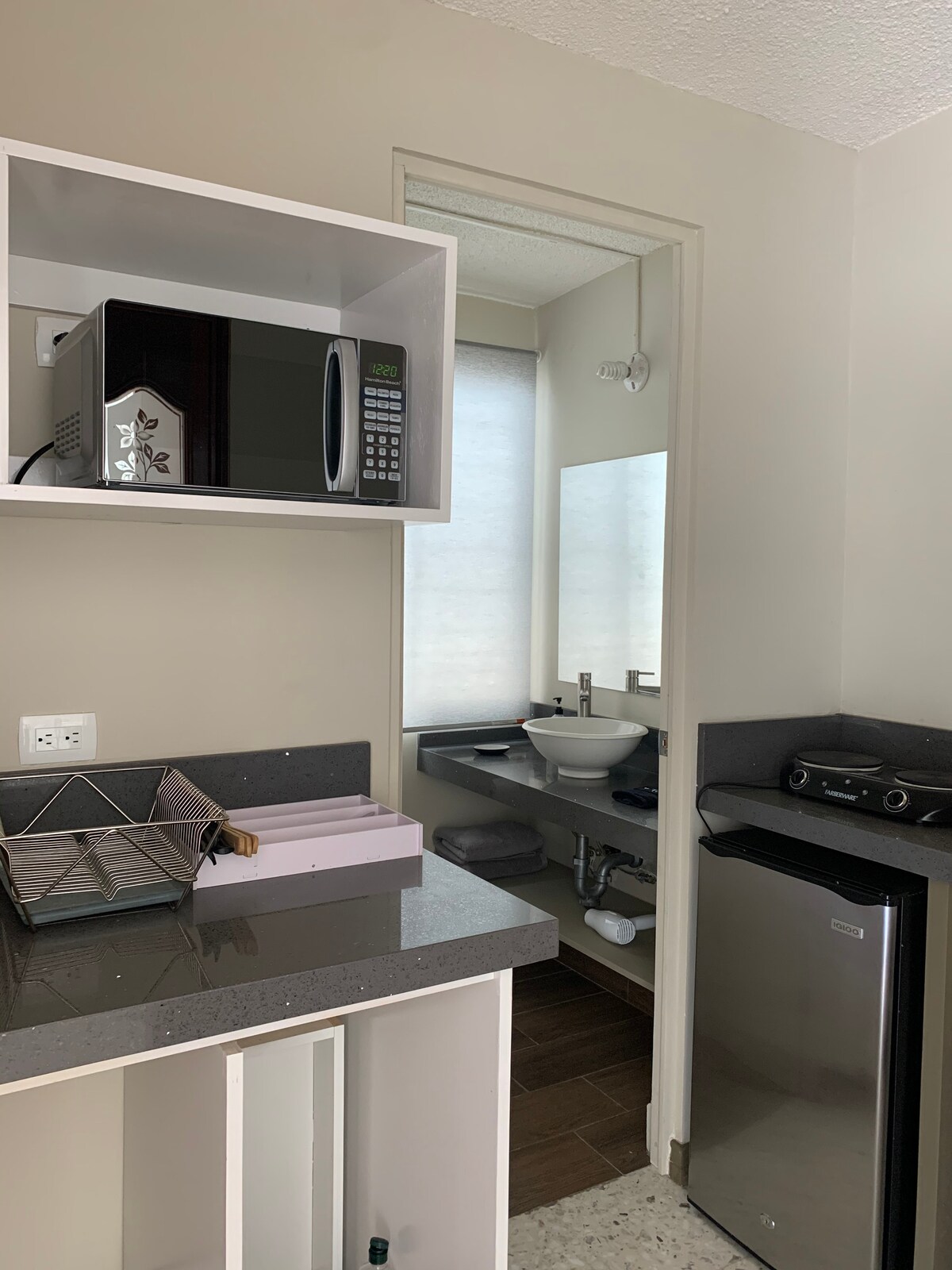 A 5 minutos de la UANL, del Centro Acuático Olímpico y del estadio Mobil Super. Este espacio cuenta con una habitación, una cocineta y baño completo, la habitación con cama matrimonial, mesa, tv de 40” con netflix, wifi, decoración moderna pensando para rentar a huéspedes que buscan un lugar donde descansar, la cocineta está equipada con frigobar, microondas, parrilla eléctrica, sartenes y utensilios básicos para cocinar.