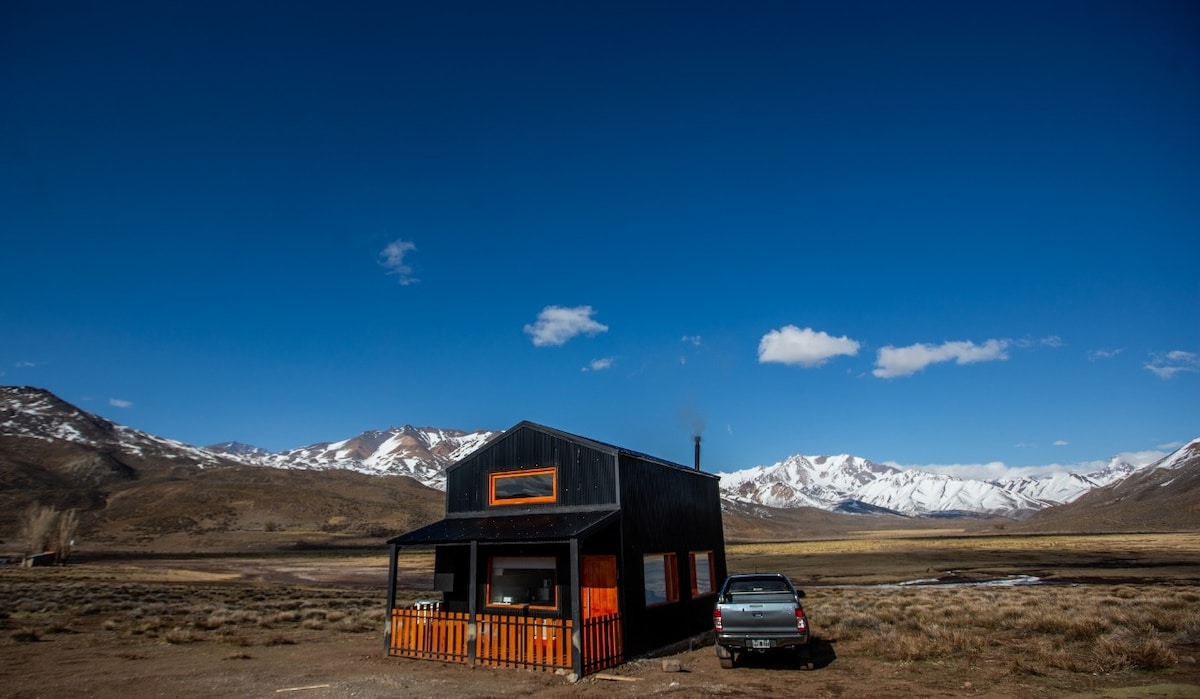 Cabaña de Montaña en barrio cerrado Piri-Hue, a 15' de Las Leñas. 8 pasajeros. Ambientes super amplios, techos en doble altura, con vistas esplendidas a las montañas. Electricidad de paneles solares y generador "Cabaña de Montaña" in "Piri-Hue gated community", just 15 minutes from the Las Leñas Ski slopes. 8 passengers. Super wide environments, double height ceilings, with windows with a dream view of the mountains. We generate and use solar