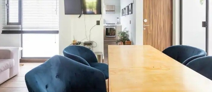 Nuevo apartamento en edificio nuevo con diseño ecléctico y colorido minimalismo, en el corazón de la colonia Cuauhtémoc, a unas cuadras de Paseo de la Reforma y el Ángel de la Independencia. Ubicado en una zona residencial tranquila con cercanía a excelentes restaurantes y clubs nocturnos. Este apartamento fue diseñado pensando en las necesidades de un visitante entusiasta y con necesidad de trabajar desde casa. Todo espacio en este hogar esta pensado en generar un espacio de tranquilidad.