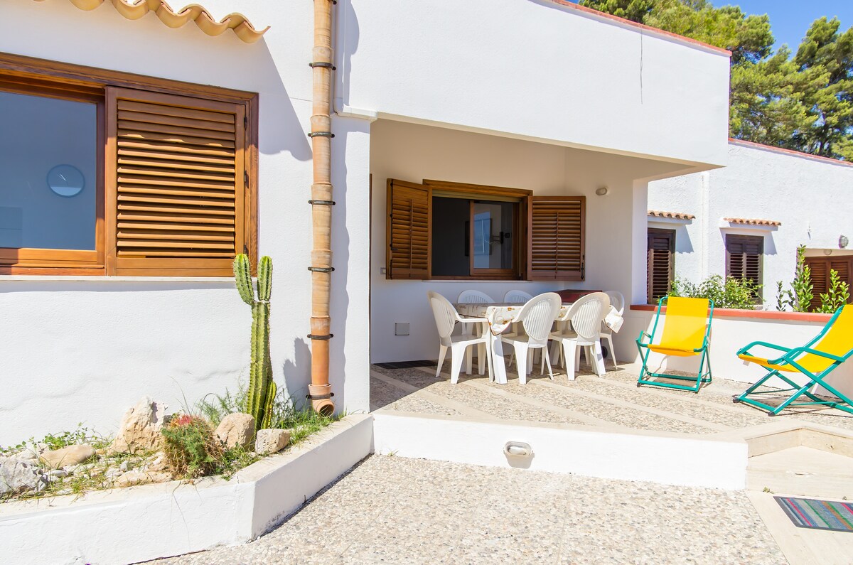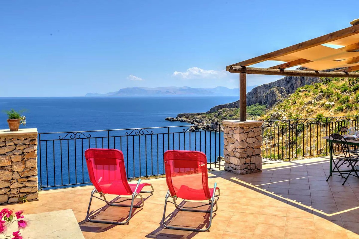 Soggiornerete al piano terra della mia villa a 3 minuti a piedi dal mare, composta da due appartamenti separati. *Non condividerete tutti gli spazi esterni con gli altri ospiti*. L'appartamento gode di un ampio spazio esterno con tavolo da pranzo, divanetti e sdraio, il parcheggio è privato. La villa si trova in una delle aree più suggestive di Scopello, a 200 metri dalla bellissima spiaggia di Cala Mazzo di Sciacca, ed è circondata da un ampio giardino alberato e una suggestiva vista mare
