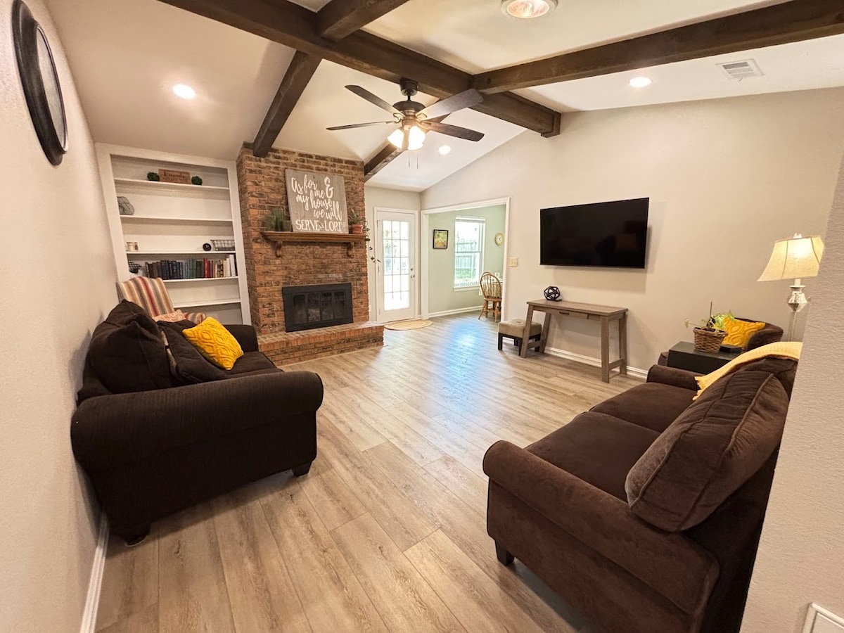 Nuestra casa de huéspedes tiene una decoración muy cálida y tranquila para reflejar la naturaleza que la rodea. Es probable que veas muchos ciervos y otros animales salvajes desde el enorme porche trasero cubierto mientras disfrutas de una comida cocinada en tu cocina completa. También tendrás acceso a un garaje para un solo coche adjunto donde también hay una lavadora y secadora disponibles para tu uso. La piscina está abierta todo el año. Ya sea que necesites un lugar para escapar y relajarte o un lugar al que llamar hogar mientras viajas por trabajo, ¡este es tu lugar!