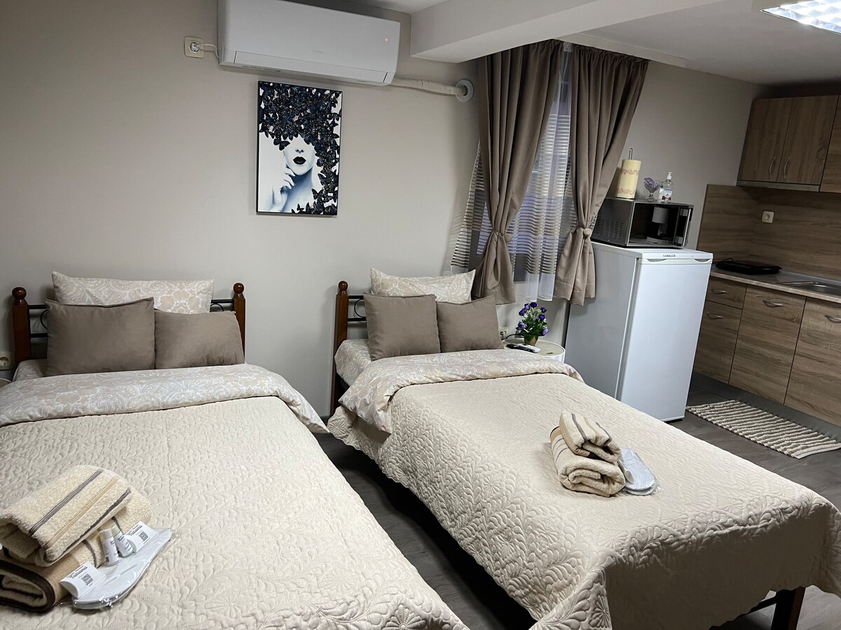 Bienvenido a nuestro elegante apartamento de dos dormitorios en el centro de la ciudad de Sandanski. El apartamento cuenta con una cocina totalmente equipada y dos dormitorios, baño y dos balcones. Cada habitación está equipada con aire acondicionado, lo que garantiza tu comodidad. Puedes disfrutar viendo la televisión en el dormitorio principal y en la sala de estar. El sofá de la sala de estar se puede convertir en una cama, lo que permite acomodar a un quinto huésped. El estacionamiento privado y el espacio de trabajo harán que tu estadía sea aún más cómoda.