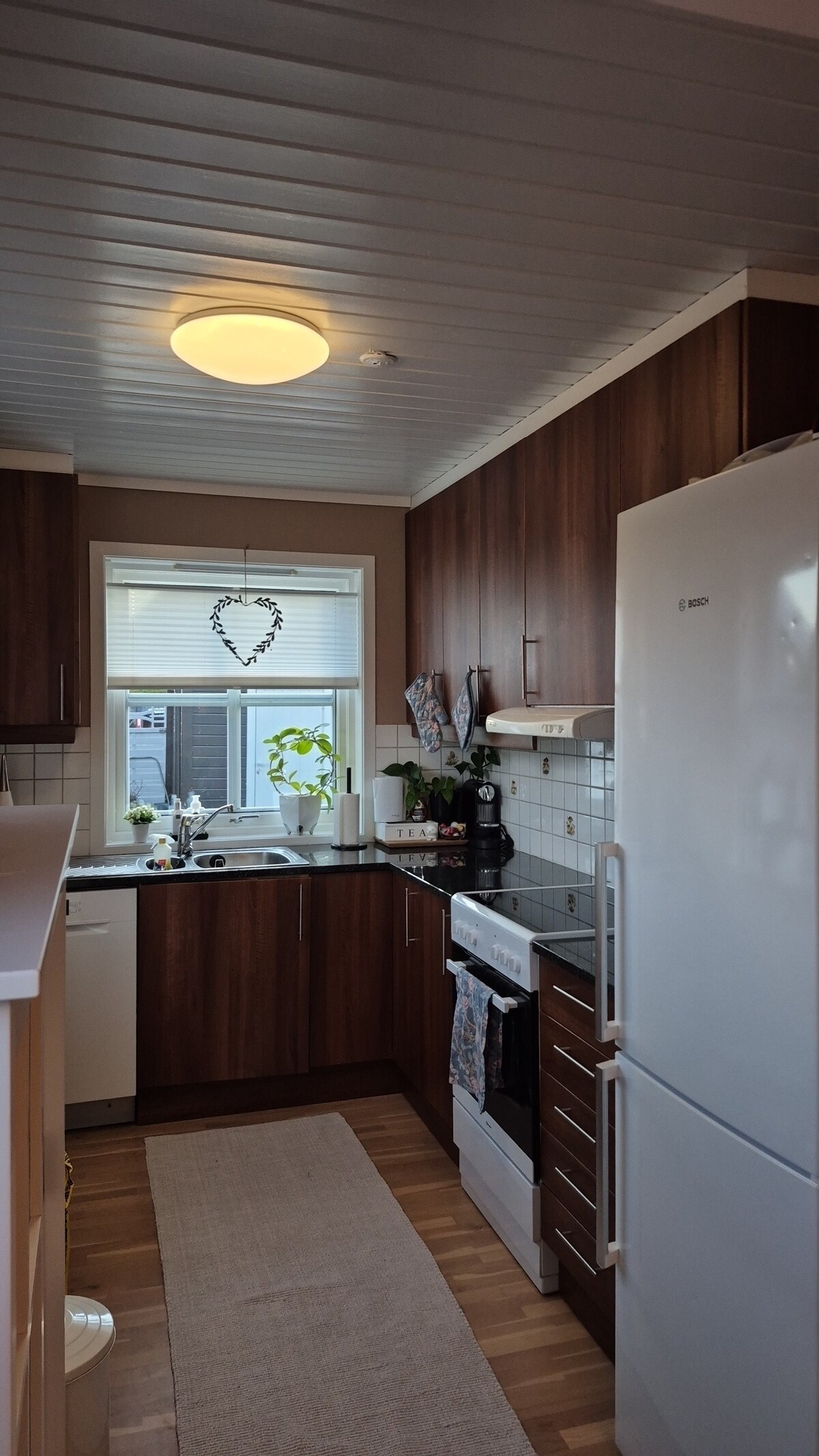 Acogedor condominio en un entorno céntrico y tranquilo. Entrada privada y aparcamiento justo fuera de la puerta. A 150 m del aparcamiento con parque infantil y parque de escalada para niños, a 200 m de la encantadora playa, a 200 m de la panadería y pescadería y a 300 m de la tienda de comestibles. Cerca del puerto con ferry a Hirtshals. Estación de tren de Larvik aprox.: 2 km. Bonitas áreas para caminar cercanas.