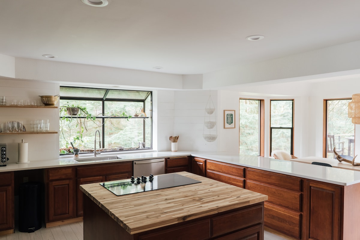 La Woodlands House se encuentra en cinco acres de un antiguo bosque privado. La casa en sí es una hermosa casa de 4 dormitorios con dos terrazas al aire libre rodeadas de imponentes pinos. Es el lugar perfecto para salir de la ciudad y desconectar en la naturaleza, o para usar como base para todas las aventuras del noroeste del Pacífico. Se encuentra a 30 minutos en coche del monte Hood o de la entrada a la garganta del río Columbia, y a solo 45 minutos del aeropuerto PDX.