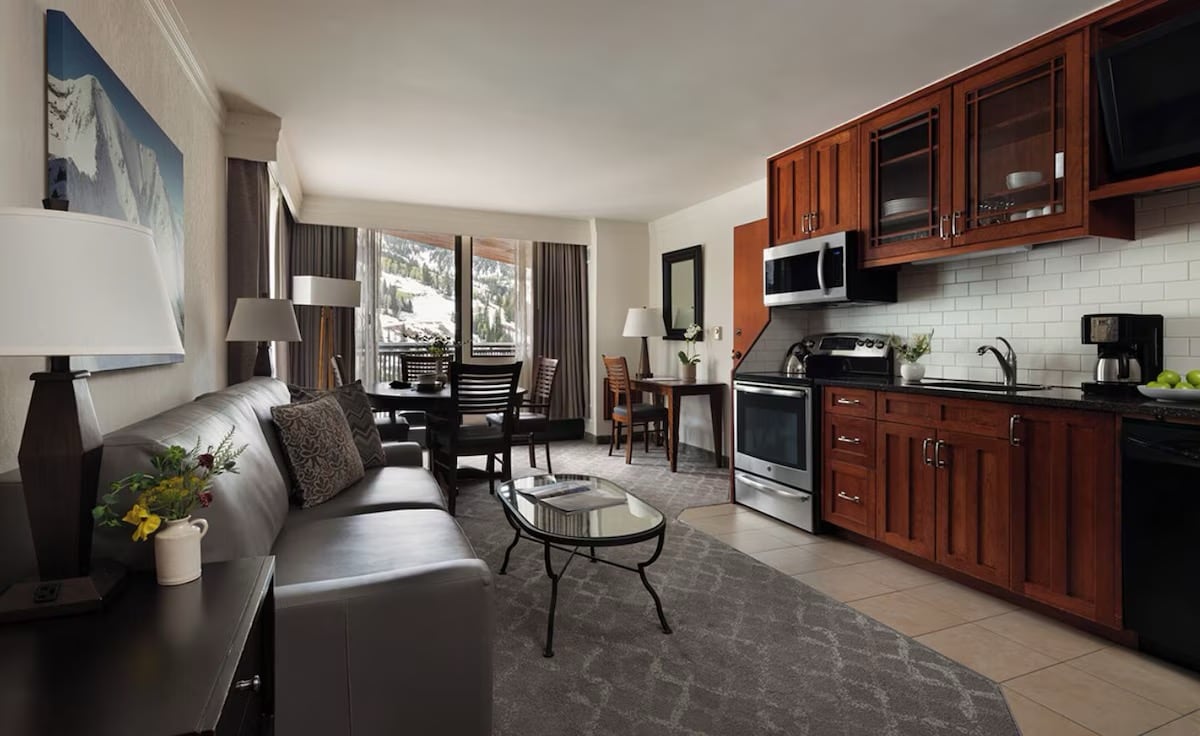 Disfruta de un fácil acceso a todo desde esta base de operaciones perfectamente ubicada. La unidad funciona como un apartamento estudio bien equipado a pocos pasos de los elevadores de sillas Snowbird y el tranvía. La unidad tiene una cocina completa, área de botas/equipos, vestidor, baño, mesa de comedor y una cama Murphy y sofá plegable. La cabaña Iron Blosam tiene muchas características, como piscina, spa, gimnasio, sala de recreación con mesa de billar, guardaesquís privado, aparcamiento gratuito y restaurante y bar en el lugar.