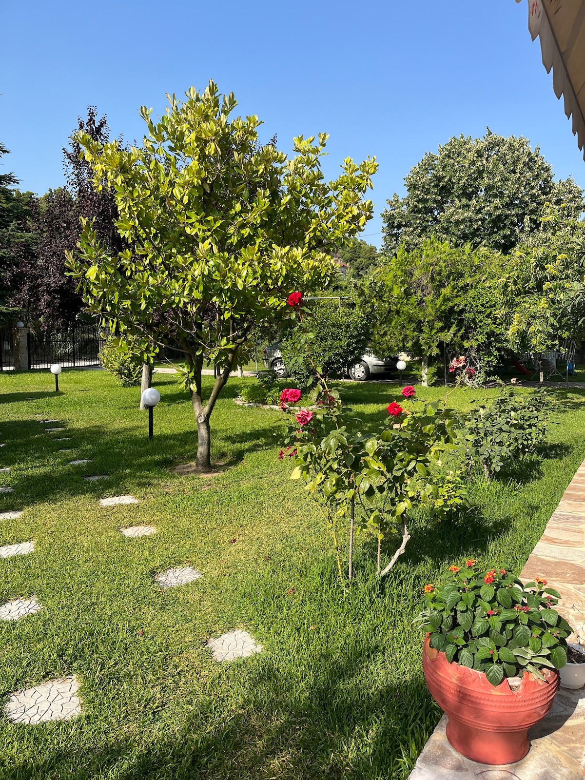 Our unique apartment is located on the second floor of a dreamy house in Epanomi. It is a 3' car ride from the beach, in a quiet neighborhood. You will enjoy the view of Olympus mountain, the sea and the sunset! A super comfy bed, a cozy sofa bed for two, a beautifully designed space with a jacuzzi, a huge balcony, an amazing garden and barbecue, safe parking, are some of the amenities. Epanomi is very closed to Thessaliniki and Makedonia airport!