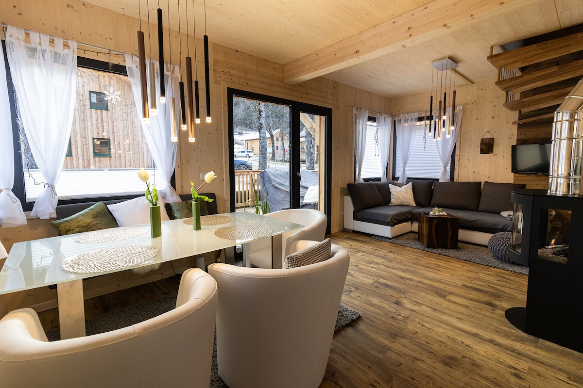 Esta hermosa casa de vacaciones es adecuada para 1-8 personas y cuenta con un equipamiento de muy alta calidad en sus 190 m². Gracias a sus grandes ventanales, la casa parece especialmente amplia y abierta. Desde el salón se accede directamente al balcón. Desde la terraza oriental y occidental se puede disfrutar de unas vistas igualmente fantásticas a las montañas. La amplia sala de estar ofrece, además de un cómodo sofá y una chimenea eléctrica, una gran zona de comedor con una lujosa cocina americana.