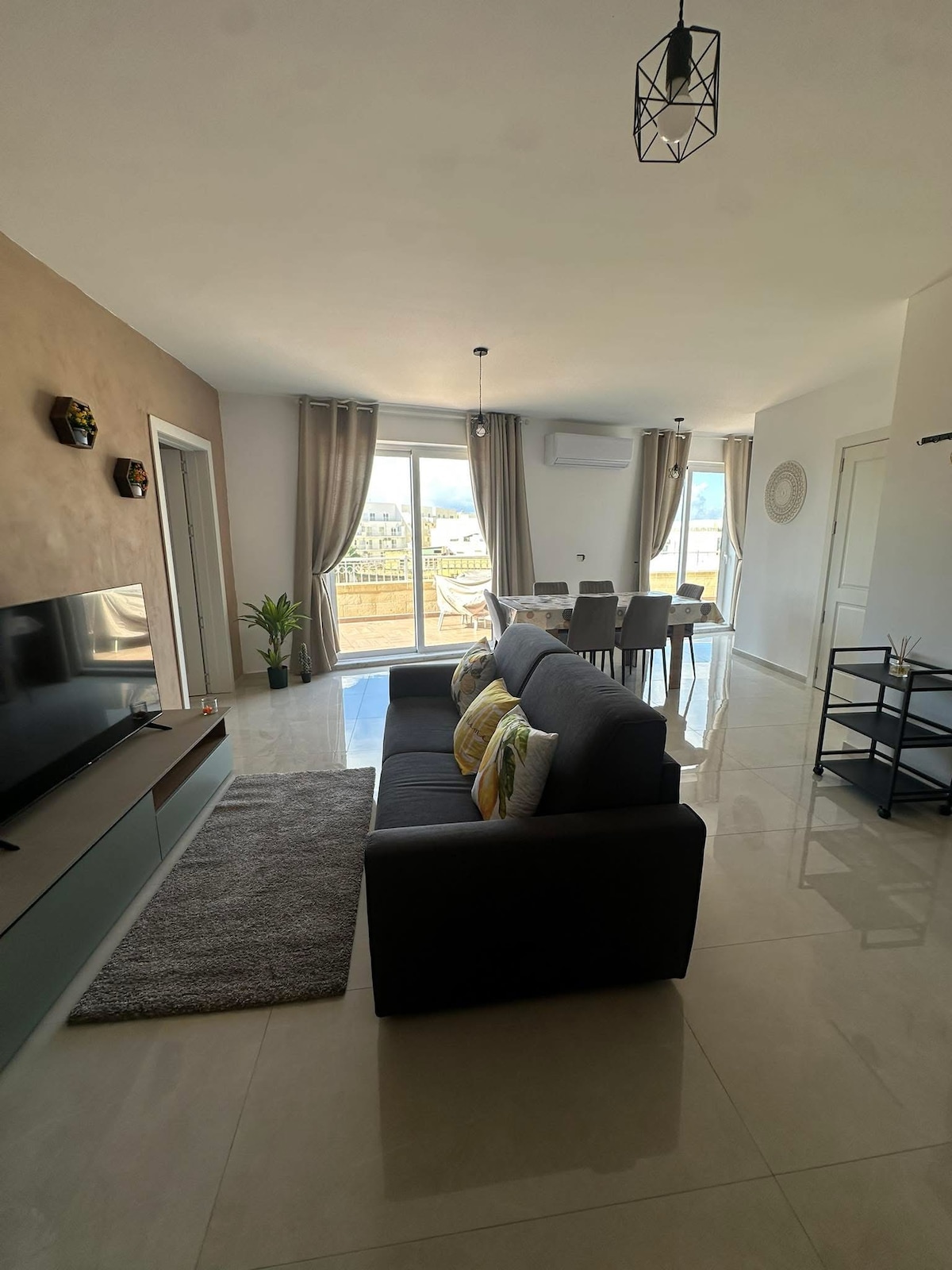 Wake up to open countryside views from this bright penthouse in Munxar. The highlight? Two large private terraces overlooking the valley towards Xlendi making it perfect for sunset dinners, morning coffee, and relaxing in the sun. Spacious and airy throughout, with 2 air-conditioned bedrooms and 2 bathrooms, it’s ideal for couples, friends, or families who appreciate comfort, privacy, and plenty of safe outdoor space for little ones