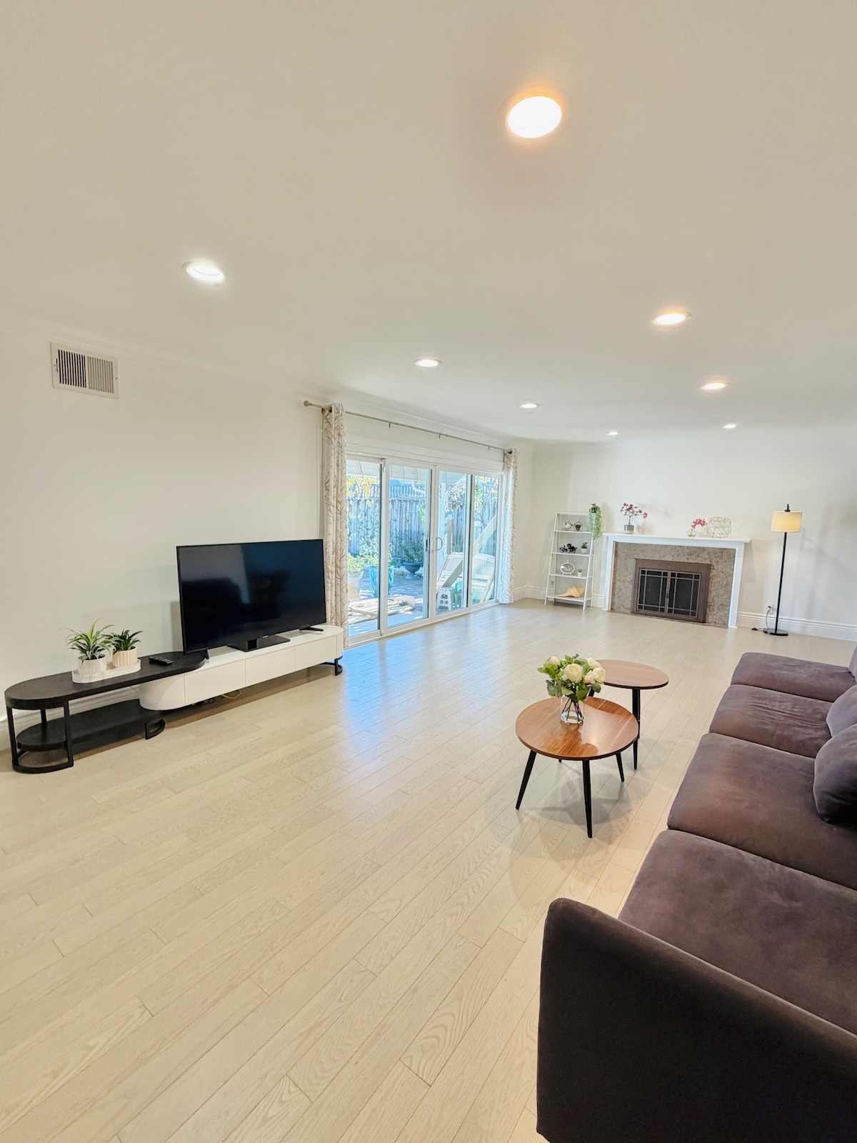 Nuestra suite de la planta baja llena de luz ha sido completamente remodelada (terminada en febrero de 2019) e incluye dos dormitorios (hasta 4 camas tamaño queen), una gran sala multimedia con un sofá cama plegable y un baño completo. El espacio total es de aproximadamente 1000 pies cuadrados con entrada privada. Los servicios incluyen todas las ventajas de nuestra sala multimedia y una pequeña cocina. Lavamos todas las sábanas, incluidas las fundas nórdicas, entre huéspedes. A continuación, te indicamos las precauciones que estamos tomando para garantizar la seguridad total de los huéspedes.