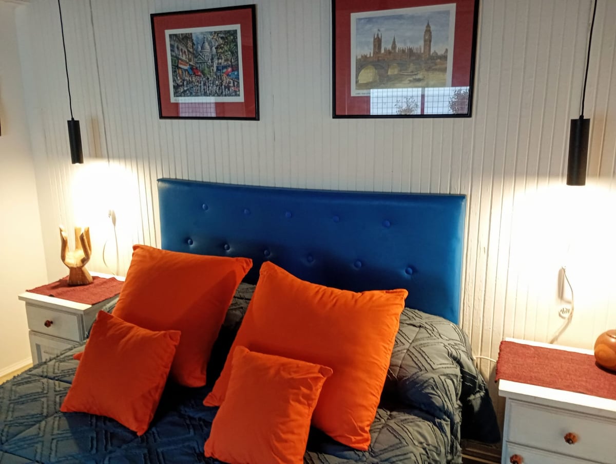Nuestra casa está rodeada de naturaleza, hay todo tipo de pájaros y un jardín de plantas epífitas colgante en medio de un parque muy verde. Es un lugar Zbello y tranquilo. Se disfruta en todas las estaciones, con piscina (dic-en-feb) y en invierno hay hogar a leña. Nuestra filosofía es cuidar y respetar el medio ambiente, por lo que no se permiten fiestas o eventos y es un espacio libre de humo. Es un barrio hermoso para hacer caminatas y por la noche muy cerca hay zona de bares muy lindos.