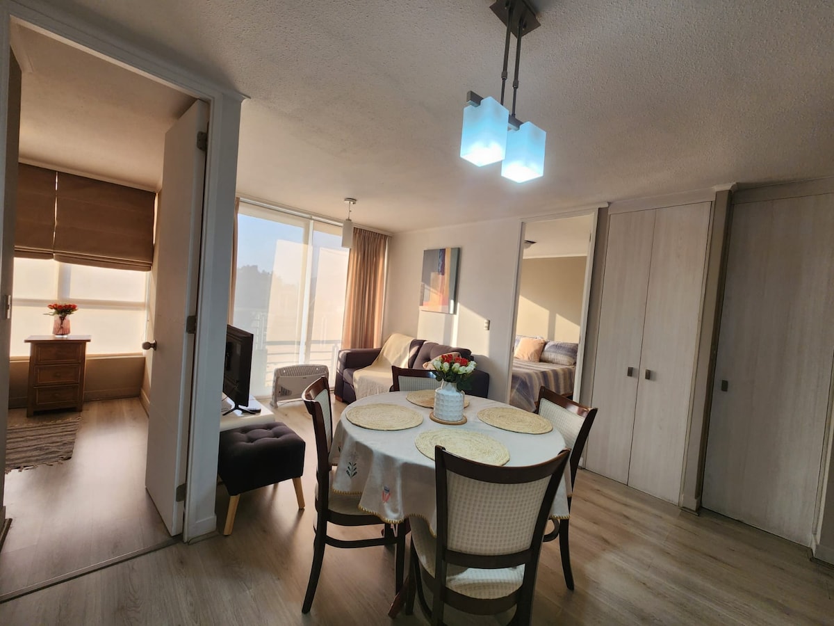 Disfruta de la sencillez de este alojamiento céntrico y tranquilo. equipado con Internet Fibra 940 MB, Tv Cable, Aire Acondicionado y Lavadora. Televisión en Living y Dormitorio Principal. APP de entretención PRIME VIDEO, HBO MAX, PARAMOUNT SIN ESTACIONAMIENTO PROPIO, Solo de visitas por 4 horas. Se ofrece estacionamiento de pago en la propiedad por $6.000 por noche SE RECUERDA QUE LA HORA DE INGRESO ES DESDE LAS 15:00 Y RETIRO HASTA LAS 12:00 SI NECESITA SE EMITE BOLETA O FACTURA