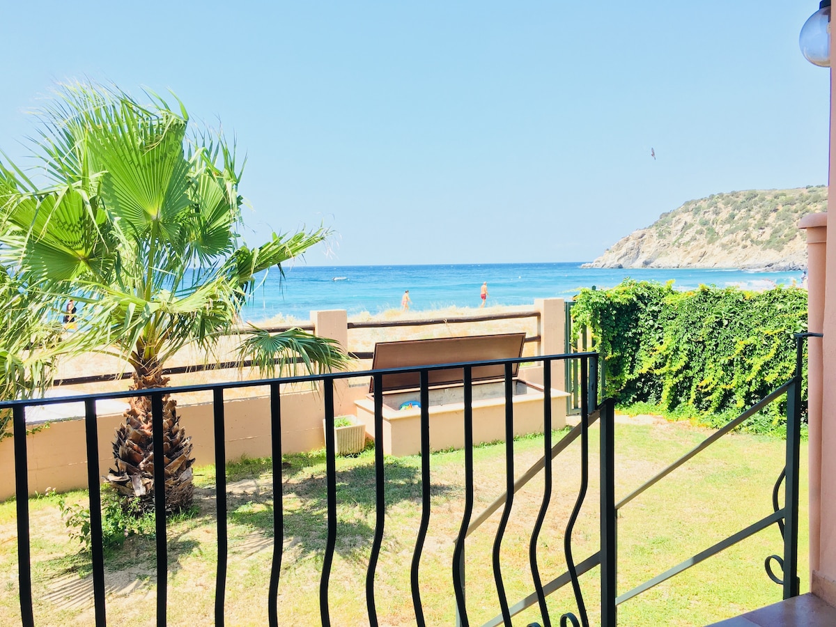 Apartamento ubicado en una villa, frente a la playa de Su Judeu, ideal para una pareja o para familias con niños o niños, que consta de una cocina con una gran sala de estar, 1 habitación doble, una zona para dormir con dos literas en un punto reservado de la gran sala de estar y un sofá cama doble, un baño, una gran terraza cubierta frente a la zona de barbacoa, disponible para los tres apartamentos que componen la villa. El apartamento está equipado con lavadora, TV, mosquiteros, microondas, microondas, horno, plaza de aparcamiento.