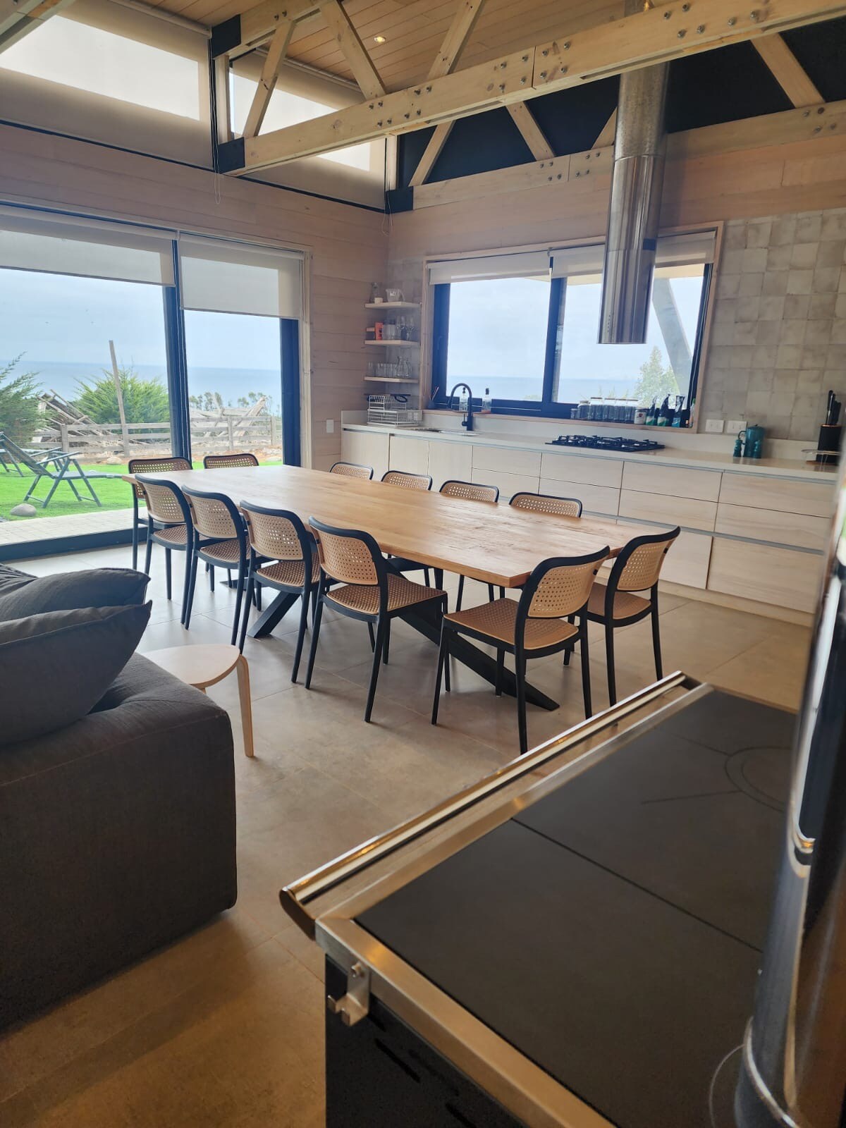 Maravillosas vistas panorámicas al mar, bosques y cielo estrellado te cautivaran. Serán lo primero que verás al despertar. Un entorno y conexión con la naturaleza total, que logrará que te relajes y desconectes del ruido de la ciudad y del estrés mental. Tu estadía será de lujo. 4 habitaciones con vista al mar, 4 baños, cocina full amoblada, gran refrigerador, sala estar , 3 TV, WiFI Starlink, teletrabajo y entretención con NetFlix, HBO,CDF,Disney , gran quincho con parrilla a gas y carbón.