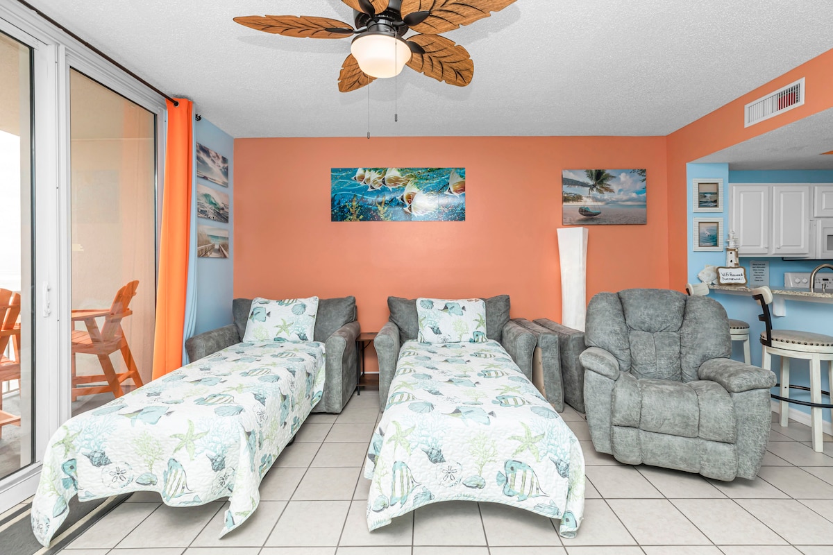 Bienvenido a La Playa Esmeralda, un estudio bellamente renovado en el segundo piso. Al entrar, te recibirán hermosas vistas del sonido, donde las puestas de sol son incomparables. Este encantador condominio incluye 2 cómodas camas, 1 cama normal y 1 cama Murphy, junto con una cafetería y cocina totalmente equipada. Estás a solo 5 minutos caminando de la playa. Disfruta de un chapuzón en la piscina, de una barbacoa en el cenador y de pescar toda la noche en nuestro gran muelle privado, sin necesidad de licencia de pesca. Check-in anticipado disponible.