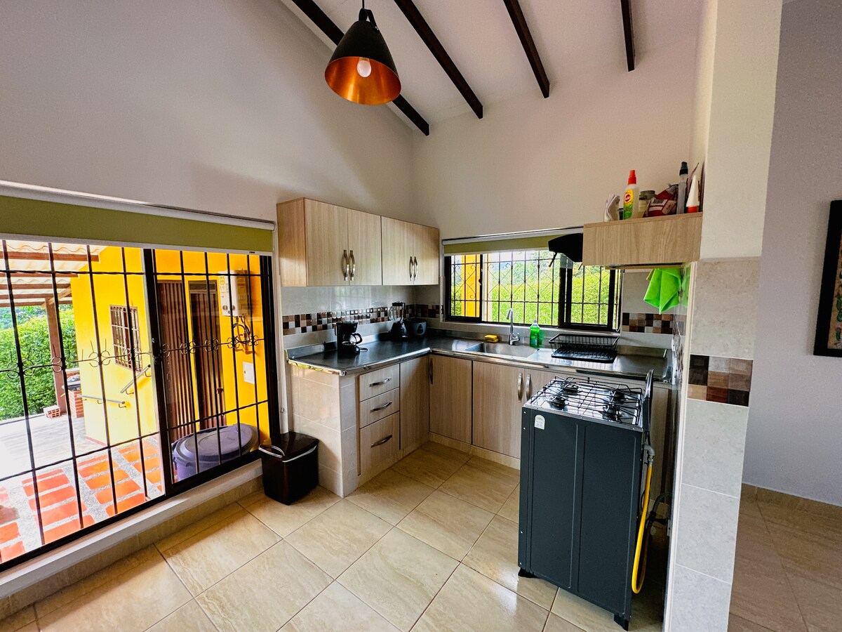 Estamos estratégicamente ubicados para cualquier actividad cafetera ( termales, cascadas, senderismo, avistamiento de aves, gastronomía, etc) A 10 minutos de Termales de Santa Rosa de Cabal, a 45 min. del aeropuerto internacional Matecana. Parqueadero privado. Podrán disfrutar de turco, jacuzzi climatizado, baño con agua caliente, chimenea, red catamarán, hamaca, fogata, bbq, wifi, excelente vista , Un lugar seguro y tranquilo; actualmente estamos construyendo un kiosco para nuestros clientes.