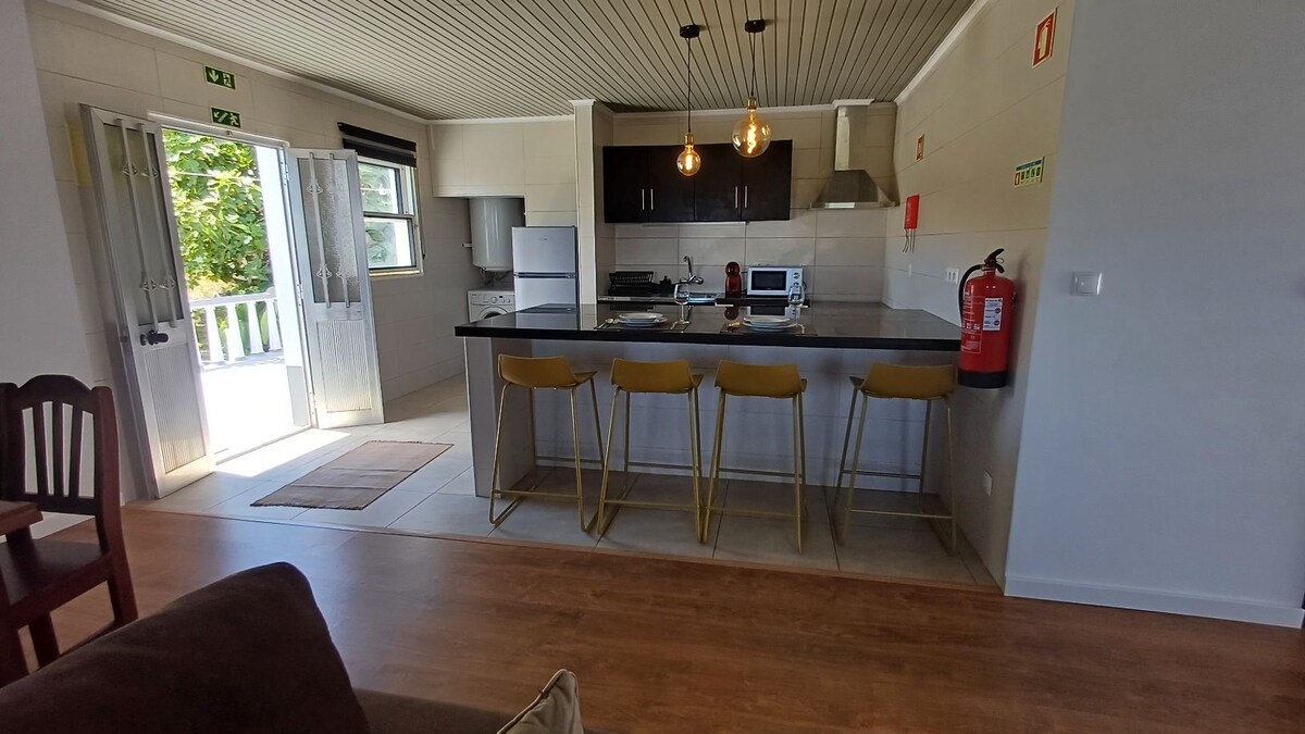 Casa familiar remodelada para convertirse en un espacio acogedor, en una zona tranquila, entre la montaña y el mar. Cocina completa. Amplia sala de estar con comedor y acceso directo a un balcón con fabulosas vistas al canal y a las islas de Pico y Faial, desde donde se puede disfrutar de una magnífica puesta de sol. Dos dormitorios: una cama doble y otra con dos camas individuales o dobles. Cuarto de baño con ducha y secador de pelo. Wifi gratuito y estacionamiento gratuito.