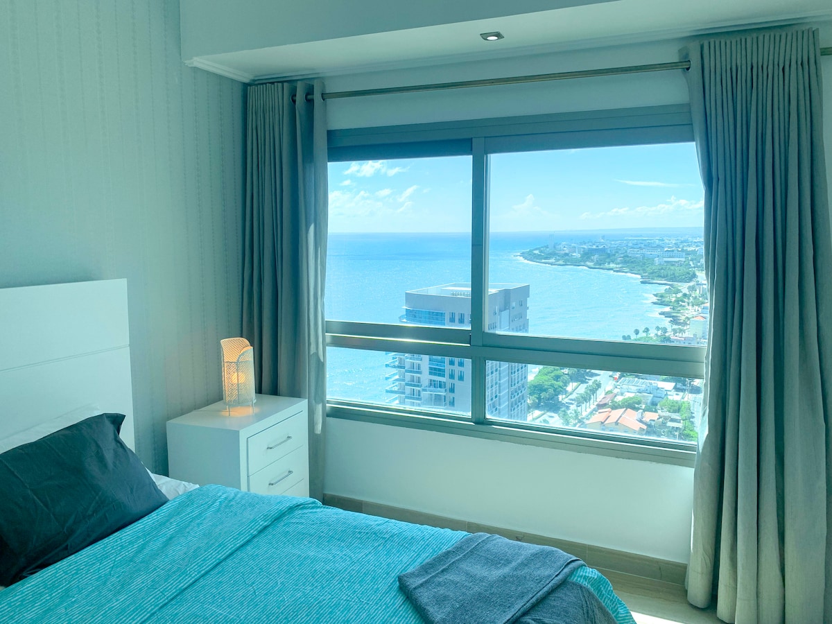 Ubicado en el Malecón de Santo Domingo, este Apto ofrece vista panorámica única del Mar Caribe y de la ciudad. El complejo cuenta con vista al mar, tiene servicios adicionales como farmacia, banco entre otros. Área turística privilegiada : Universidades, supermercados, museos, casinos y restaurantes a pie. En carro, Zona Colonial a 5 min y Puerto Sans Souc, Parque Nacional Los Tres Ojos a 15-20 min Aeropuerto Las Américas a 30 min y la playa Boca Chica a 35 min de distancia.