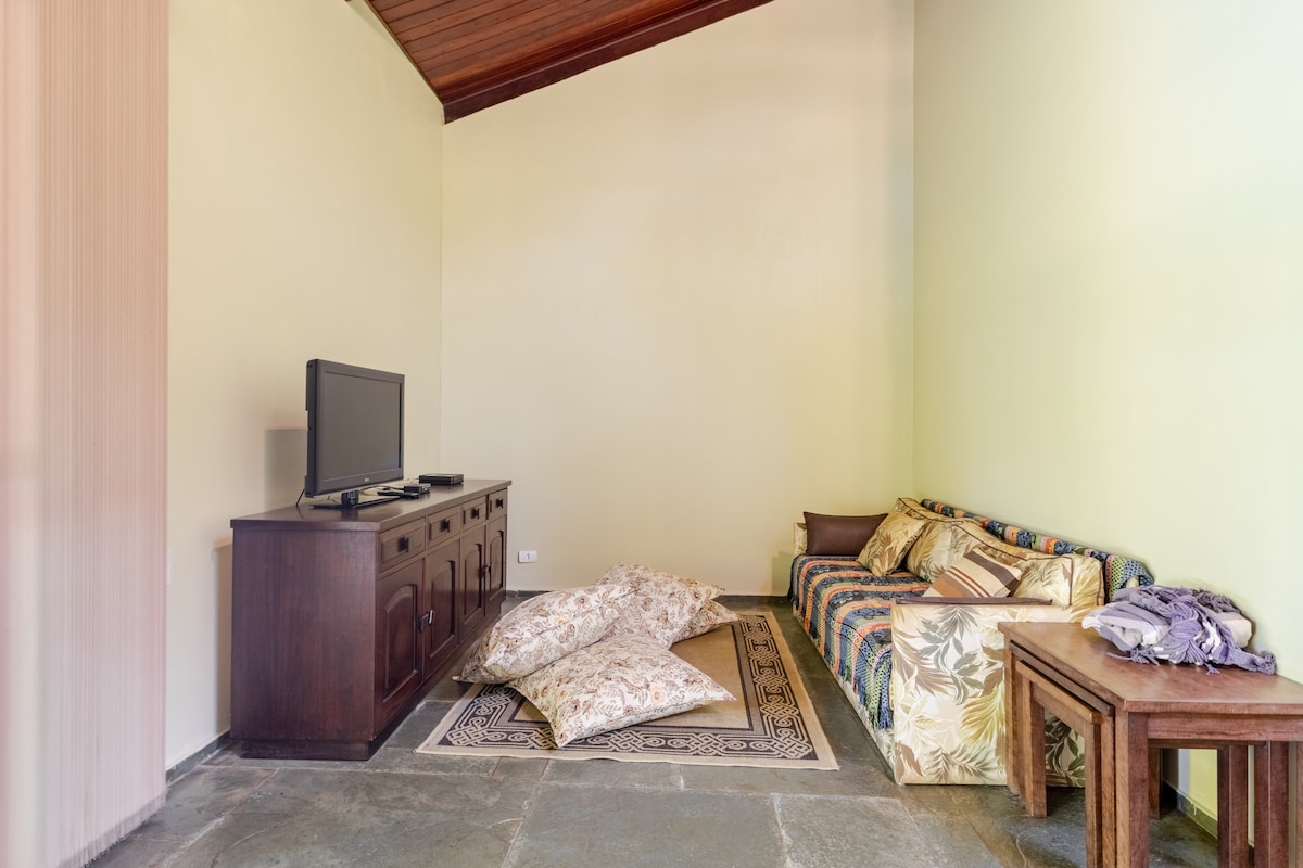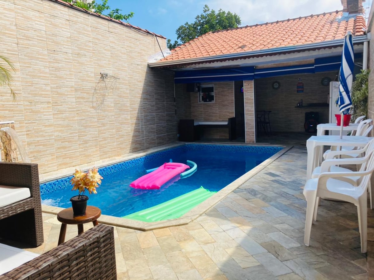 Llamamos a nuestra casa “Entre Águas e Montes: Refúgio Guarujá” por su ubicación y sabroso perfil para parejas y familias. La casa está en una comunidad cerrada ("Condomínio Albamar") a poca distancia a pie del campo de fútbol, la cancha de tenis, el parque y la pista de deportes mixtos. La casa ha sido recientemente renovada e incluye una piscina privada, barbacoa, aire acondicionado (habitación principal), ventiladores de techo en cada habitación y un acogedor balcón con hamaca y arreglos de vida.