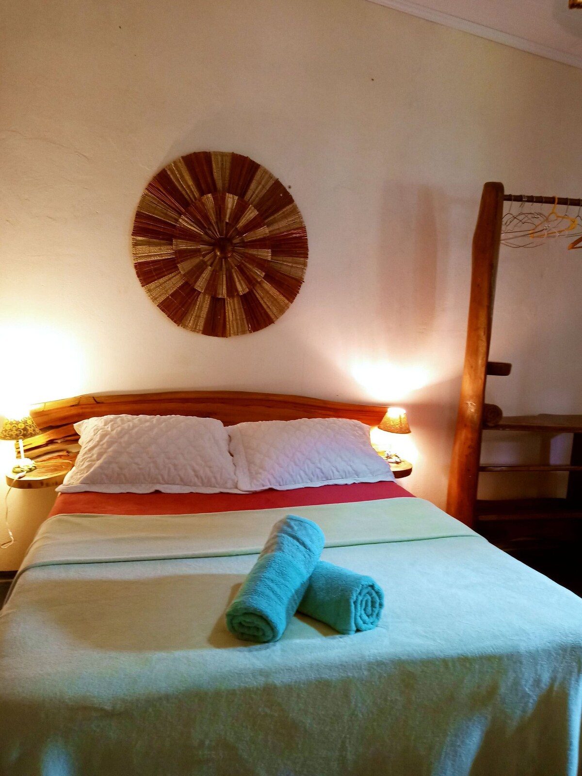 Situado en la entrada de Vila de São Jorge, en el municipio de Alto Paraíso de Goiás, el corazón de Chapada dos Veadeiros y la entrada al Parque Nacional. Ubicación exelente, con cama de matrimonio y dos camas individuales, baño, cocina completa con balcón y jardín. Totalmente amueblado, equipado con TV, wifi, microondas y aire acondicionado. Tenemos una zona al aire libre que se comparte con otros huéspedes y nuestro personal. No permitimos mascotas. Tiene capacidad para 4 personas cómodamente.