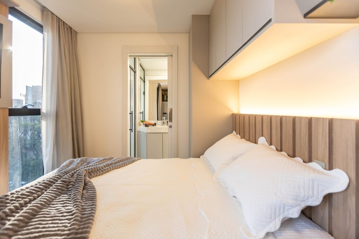 Acogedor apartamento en Batel, ideal para aquellos que buscan comodidad y practicidad en Curitiba. Cuenta con cocina equipada (mesa de comedor, nevera, vitrocerámica y microondas), dormitorio con cama doble y banco de trabajo, así como sofá cama queen. Aire acondicionado frío/calor, persianas opacas para noches tranquilas y excelente ubicación cerca de mercados, farmacias, centros comerciales y restaurantes, con fácil acceso para aquellos que no tienen coche.