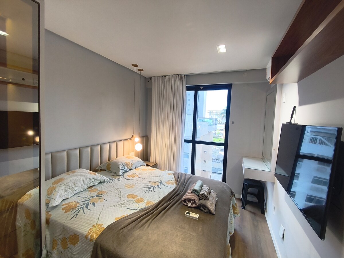 Moderno, cómodo y bien situado, Studio no Calhau es perfecto para aquellos que buscan practicidad y bienestar en São Luís. Con una decoración elegante, una cocina equipada, una cama acogedora, wifi y aire acondicionado, el espacio ofrece todo lo necesario para una estancia completa. Cerca de playas, centros comerciales y restaurantes, es el lugar ideal para relajarse y disfrutar de lo mejor de la ciudad.