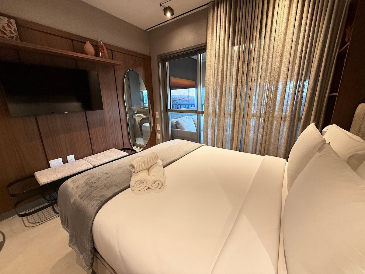 Estúdio Novo com Vista Panorâmica — 24º Andar com Piscina Infinita e Estilo! Desfrute de São Paulo com conforto e estilo em nosso estúdio montado com carinho para recebê-lo. Localizado no 24º andar com *vista envidraçada de 180° para a Marginal Pinheiros*. Um refúgio moderno, ideal para quem busca praticidade, comodidade e uma experiência diferenciada na cidade.