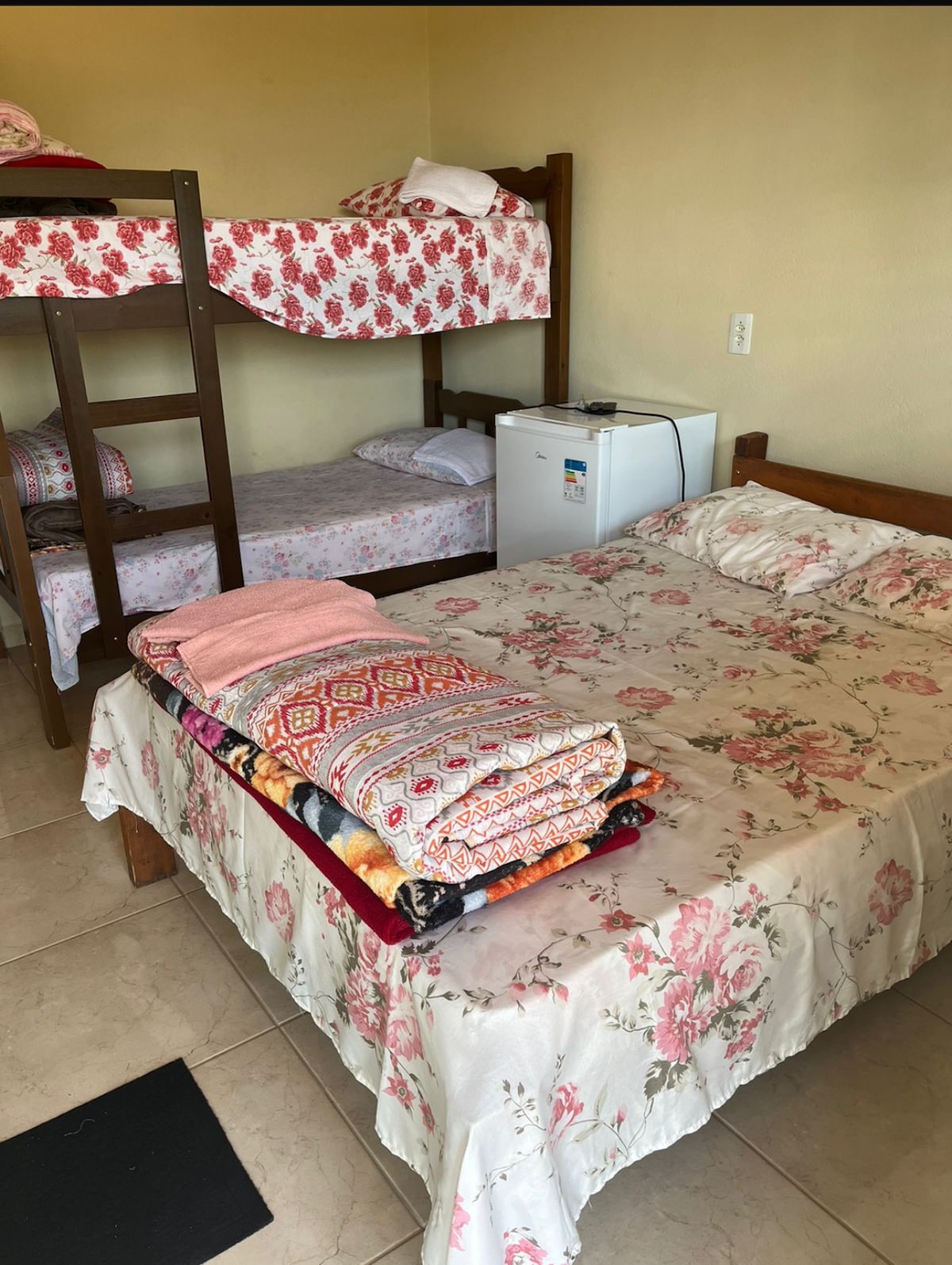 Acomodação com 02 quartos, contendo 01 cama de casal e no outro quarto 02 camas de solteiro mais 01 beliche, na sala com 02 sofas camas. Podendo comporta até 08 hóspedes. Equipado com banheiro privativo, ducha pressurizada e aquecida a gás.