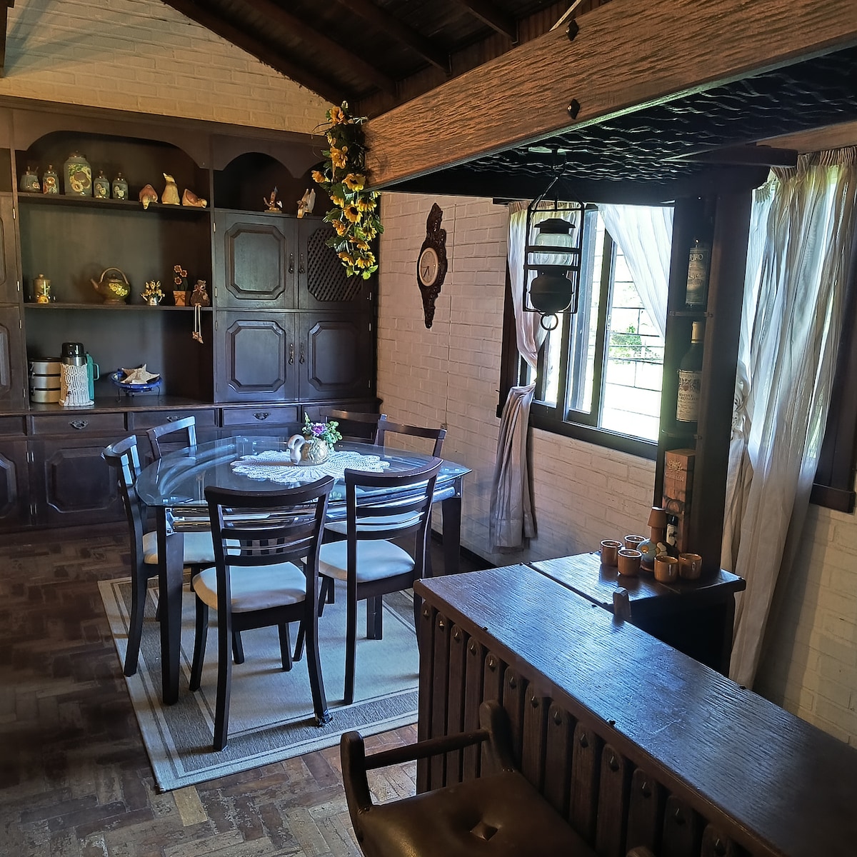 Relájate con toda la familia en este alojamiento tranquilo. En él encontrarás un patio con mucho espacio para que los niños, mascotas y amigos se diviertan lejos del ajetreo de la ciudad. ¿Qué ofrece? - 2 barbacoas, una dentro y la otra afuera; - 1 estufa campeona; - 1 chimenea hecha de piedra; - 3 dormitorios acogedores, 1 con baño privado; - 1 baño social con ducha; - 1 habitación; - 1 sala de estar y comedor integrados; - 1 cocina completa; - Estacionamiento vallado.
