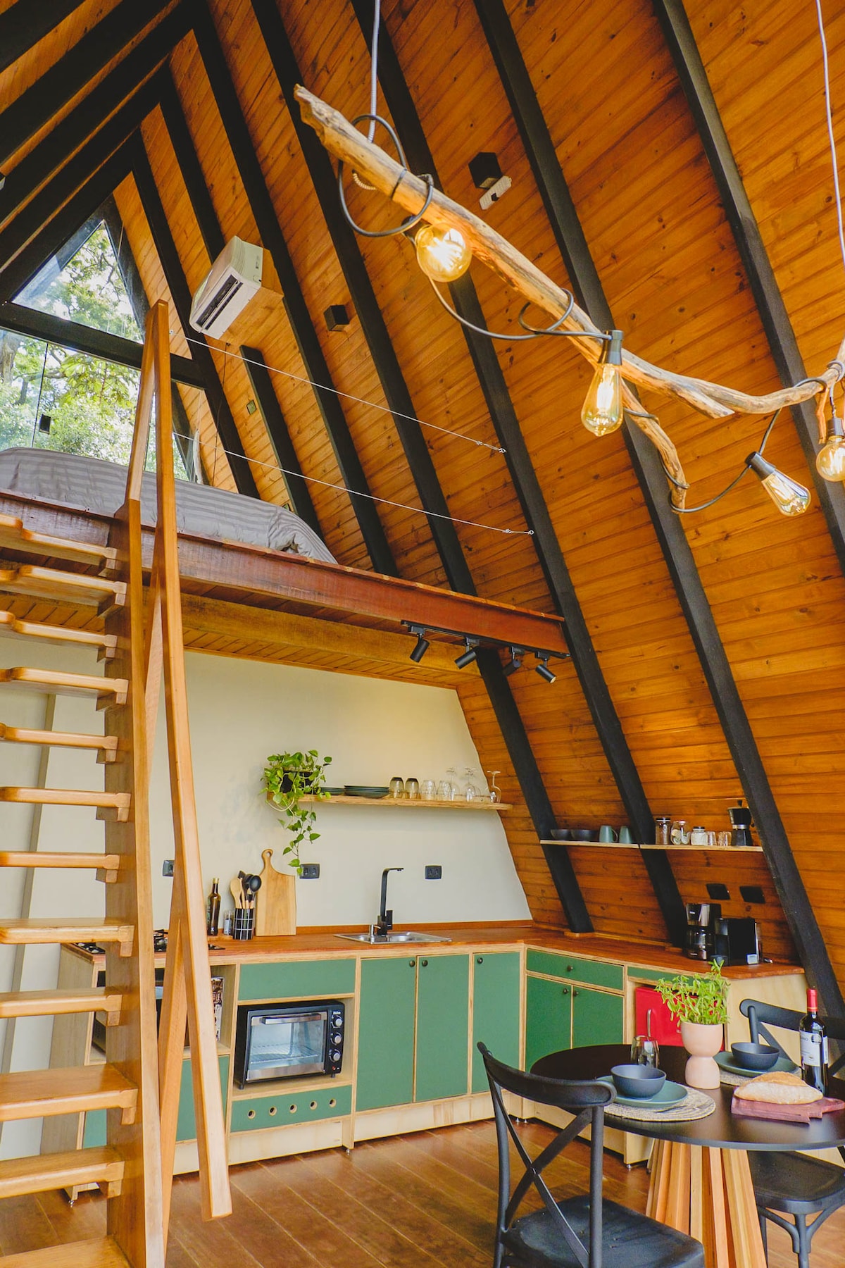 Magnífico chalet A-frame (@ducantochales), ubicado a 7 km del centro de la ciudad. Cerca de dos excelentes restaurantes en el barrio de Venâncios. El chalet Palermo fue diseñado con la intención de proporcionar no solo un alojamiento, sino una experiencia. Tiene un dormitorio en la parte superior, cama tamaño queen y sábanas de alta calidad. En la parte inferior, una cocina completa, sala de estar con sofá cama, chimenea, TV. Baño con dos duchas, bañera de hidromasaje con techo y paredes de cristal, con vistas.