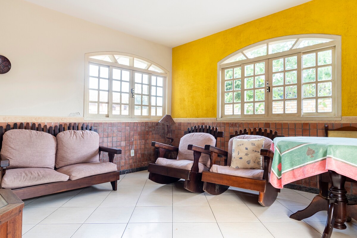 Relájate con la familia en esta casa tranquila, perfecta para grupos de hasta 8 personas y/o familias con niños. Con piscina, parque infantil, barbacoa, viga de fútbol, mesa de ping-pong y futbolín, no hay escasez de opciones de entretenimiento. Tu mascota también es bienvenida. Incluimos sábanas y almohadas para tu comodidad. Distancias: Lagoa de Jacarepiá: 3,5 km Playa Vilatur: 5,9 km Centro de Saquarema: 10,9 km Seca Beach Lagoon: 16,8 km Playa de Itaúna: 11,4 km @rentalsaquarema