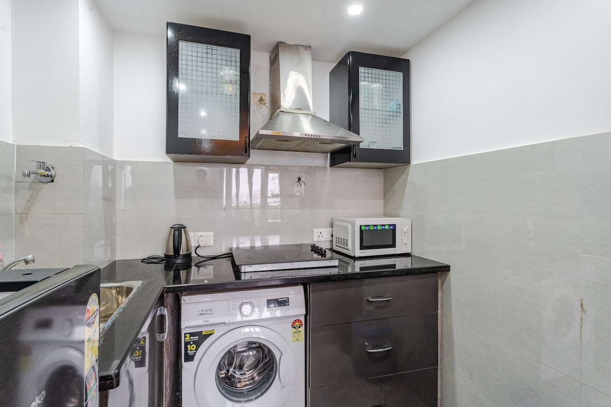 Apartamento de servicio premium 1BHK en el sector 43, Gurgaon con aire acondicionado en el salón y el dormitorio, además de una cocina con inducción, microondas y cubiertos. En una zona elegante, a poca distancia del centro comercial Gold Souk y de la escuela Shalom Hills, a 2,2 km de la estación de metro Millennium City Centre y a 2,1 km del hospital Fortis. Los huéspedes extranjeros son bienvenidos. El registro de entrada anticipado estará sujeto a disponibilidad y tendrá un cargo de 500 rupias, así como el registro de salida después de la hora establecida, que también tendrá un cargo de 500 rupias por cada 3 horas posteriores.