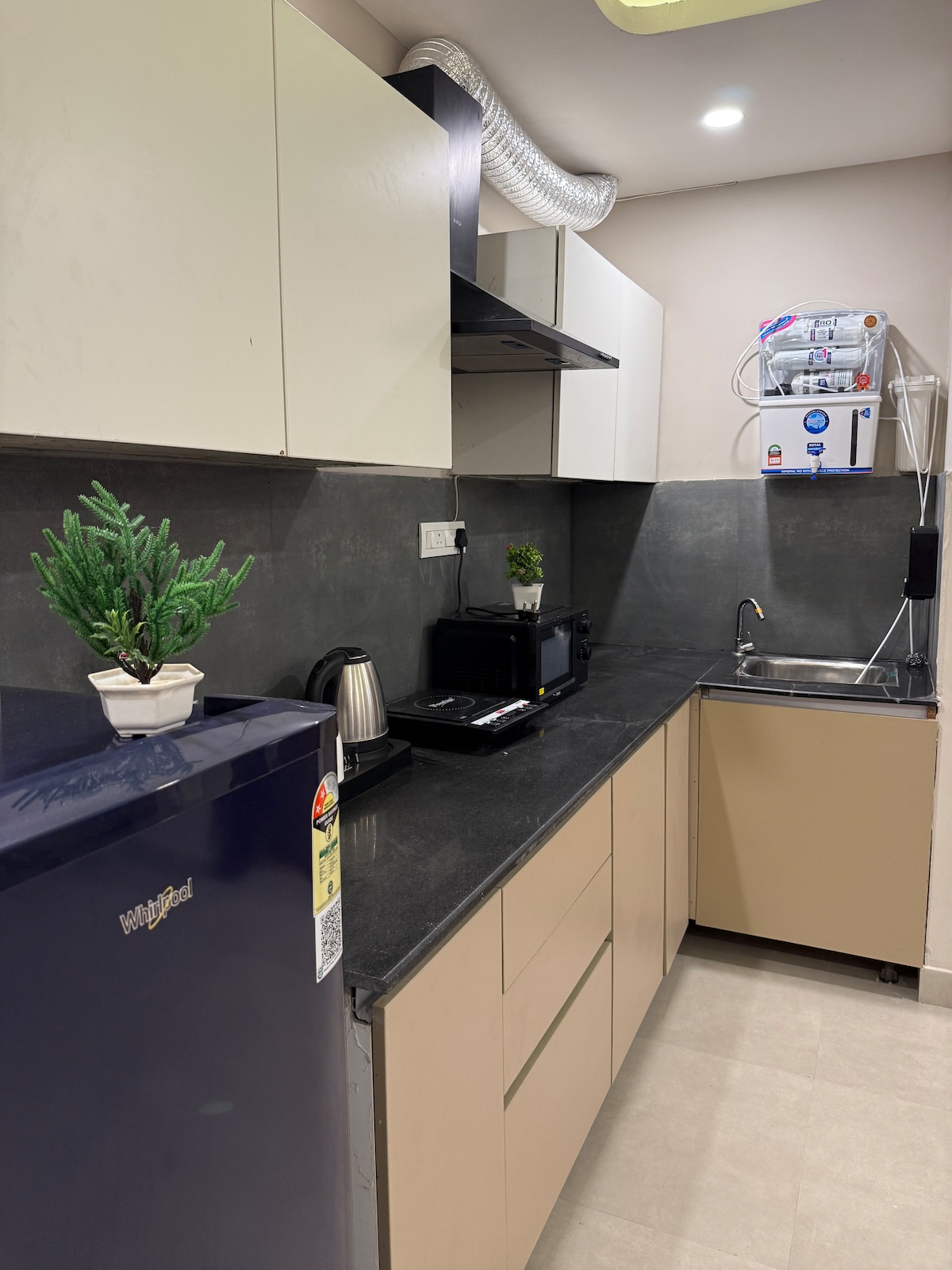 Welcome to this compact legend at Satya Element One—a studio that proves size doesn’t matter, vibes do. Enjoy a small-but-sassy kitchenette for coffee and confidence, a bathtub for deep thoughts or dramatic soaking, and a balcony for judging traffic like a local. Cozy, comfy, and dangerously charming. You’ll come for the stay and leave with trust issues because no place will compare.