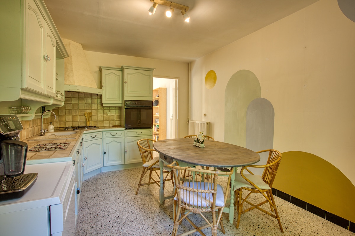 Relájate en este pequeño alojamiento, tranquilo y sombreado en un pequeño rincón de la propiedad de Jacky y Béatrice totalmente vallado con tu pequeño jardín privado bajo una sombrilla de hojas, así como una terraza y cocina de verano al aire libre, con plancha solo para ti y también podrás disfrutar de la piscina totalmente soleada con tumbona para relajarte y disfrutar del sol. Béatrice y Jacky le dan una cálida bienvenida al taller de los sueños 😉