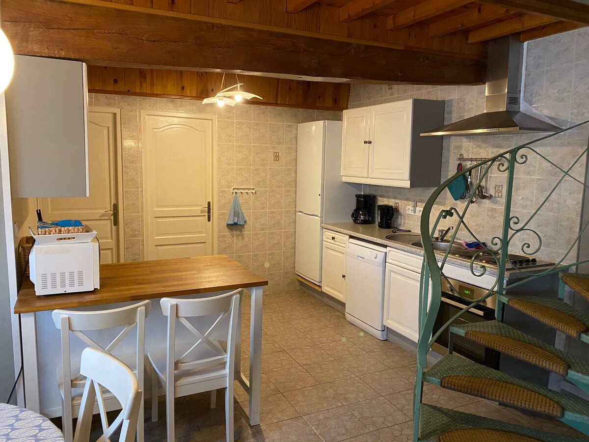 Vengan a pasar un fin de semana romántico en una casita acogedora y auténtica en Montreuil-sur-Mer. Pueblo tranquilo con muchos restaurantes. La casa está cerca del punto de partida de numerosas rutas de senderismo. Está a 15 minutos de las playas de la Costa de Ópalo (Merlimont, Le Touquet, Stella, etc.). Estacionamiento público gratuito frente a la casa. En la habitación, se puede organizar una noche de Netflix en pantalla grande o partidas de dardos para dos junto a la chimenea 😌 No puedo esperar para recibirle. Hasta pronto 😊
