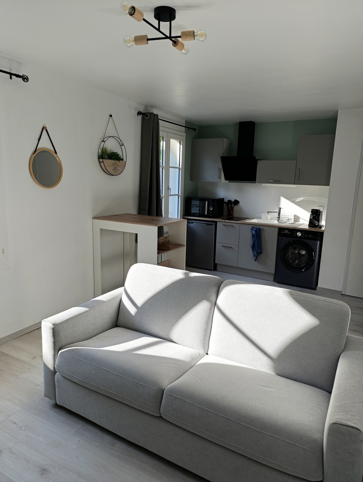 Studio de 25m2 refait à neuf, très lumineux situé à côté de la place St Pierre (restaurants, boulangerie, commerces et marché le samedi matin) dans une rue calme du centre historique et à côté du château de Saumur. Il est au 2ème étage d'un immeuble de standing en tuffeau/bois. Parking des remparts gratuit à 70m. Très bon réseau 4G, box avec fibre. Composé d'un séjour (canapé lit)/cuisine équipée et salle d'eau séparée avec douche et wc. Draps, serviettes, produits de première nécessité fournis.