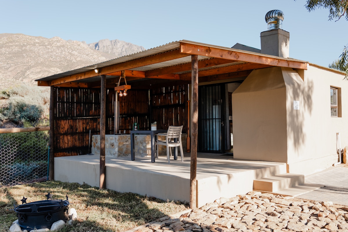 A las afueras de Swellendam, enclavado tranquilamente en las faldas de las exuberantes y hermosas montañas Langeberg, se encuentra la pintoresca pequeña ciudad de Suurbraak. Al otro lado del río, se encuentra la pintoresca cabaña independiente de Bibi y Peter.