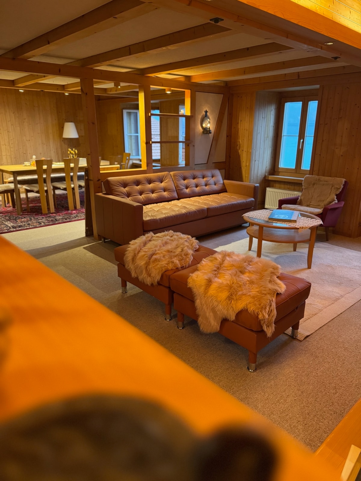¡Bienvenido al acogedor chalet suizo a solo 60 metros de la orilla del lago de Thun! Nuestra casa de vacaciones combina el estilo alpino tradicional con todas las comodidades modernas. Disfrute de la tranquilidad en el jardín o en la terraza cerca del lago o relájese en el acogedor interior. Ideal para familias o parejas, nuestra casa ofrece una cocina totalmente equipada, cómodas habitaciones y una acogedora sala de estar con estufa sueca. Disfrute de la hospitalidad en una de las regiones más bellas de los Alpes.