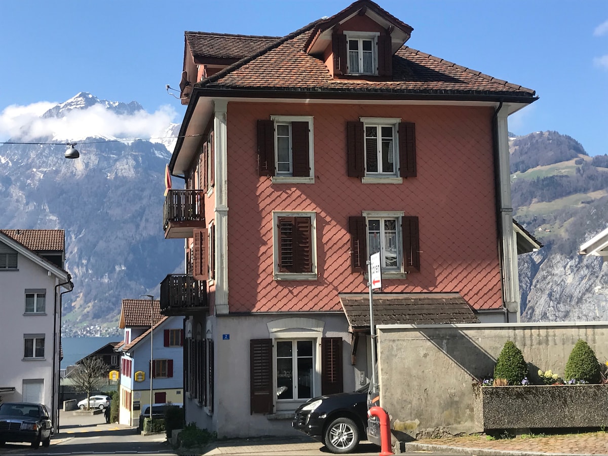 Moderno ático con vistas al lago y a las montañas, balcón privado en un barrio tranquilo. El apartamento se encuentra a solo 5 minutos a pie del lago y del bosque. Ideal para los amantes del deporte, el windsurf, la natación, el senderismo, el ciclismo y el esquí. La estación de windsurf en el lago de Uri se encuentra a 5 minutos a pie. Excelente punto de partida para explorar la Suiza Central, a 30 minutos en coche de Lucerna y del Tesino. Hay una parada de autobús a 200 metros, y restaurantes y bares están a poca distancia a pie.