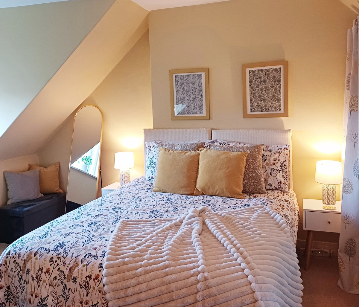 La cámara de María Reina de Escocia en el castillo de Neidpath es quizás el lugar más romántico para alojarse en la frontera escocesa. Explora en privado todo el castillo y luego retírate para disfrutar de tus habitaciones suite. La antigua cama con dosel, la profunda bañera con tapa redonda y la chimenea evocan tiempos pasados, pero son realmente cómodos y lujosos. Una mesa elegante está preparada para el desayuno. Peebles está a 10 minutos a pie, con una gran cantidad de tiendas y restaurantes, así como un museo y un chocolatero galardonado.