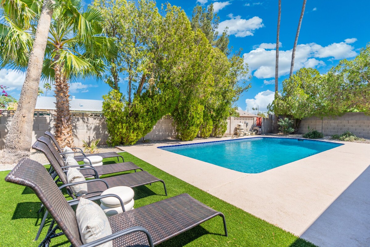 New HOUSE! March 2024! FREE HEATED POOLIN WINTER AND HOT TUB + ZERO CLEANING CHORES! DON'T PAY FOR POOL HEAT AT SOMEONE ELSES AIRBNB! - BRAND NEW Beautiful remodeled 3 bedroom house with resort style backyard, only minutes from Old Town Scottsdale! Free Heated Pool, Hot Tub, Fire Pit, Mini Golf, Ping Pong, Giant Chess, + fastest wifi and smart tv's! The house is fully stocked with a complementary coffee bar, outdoor bbq, and the most beautiful turf for the whole family to enjoy! CABLE TVS !