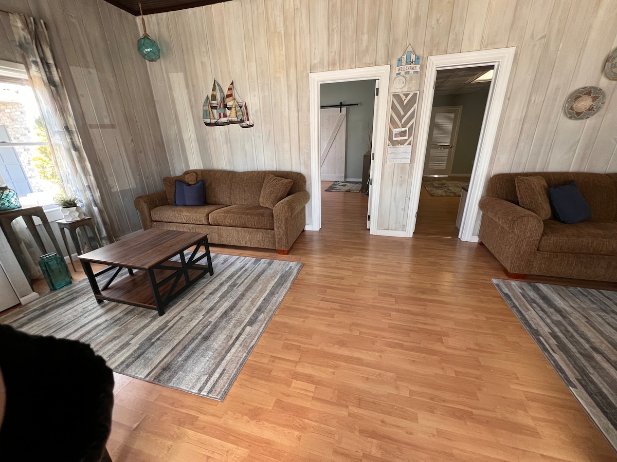 Make some memories at this unique and family-friendly place. Lots of character, this property used to be a general store, with high ceilings and a large open living area to gather. 2 Full size pull out couches for addl sleeping space. 2 large bedrooms, fully equipped kitchen, washer/dryer and an outside area to sit, dine/grill. In addition, there are 4 badges for beach/pier entry. Note: 25+ yrs to rent. Weekly rentals (Saturday-Saturday) July through the end of August preferred. Thanks