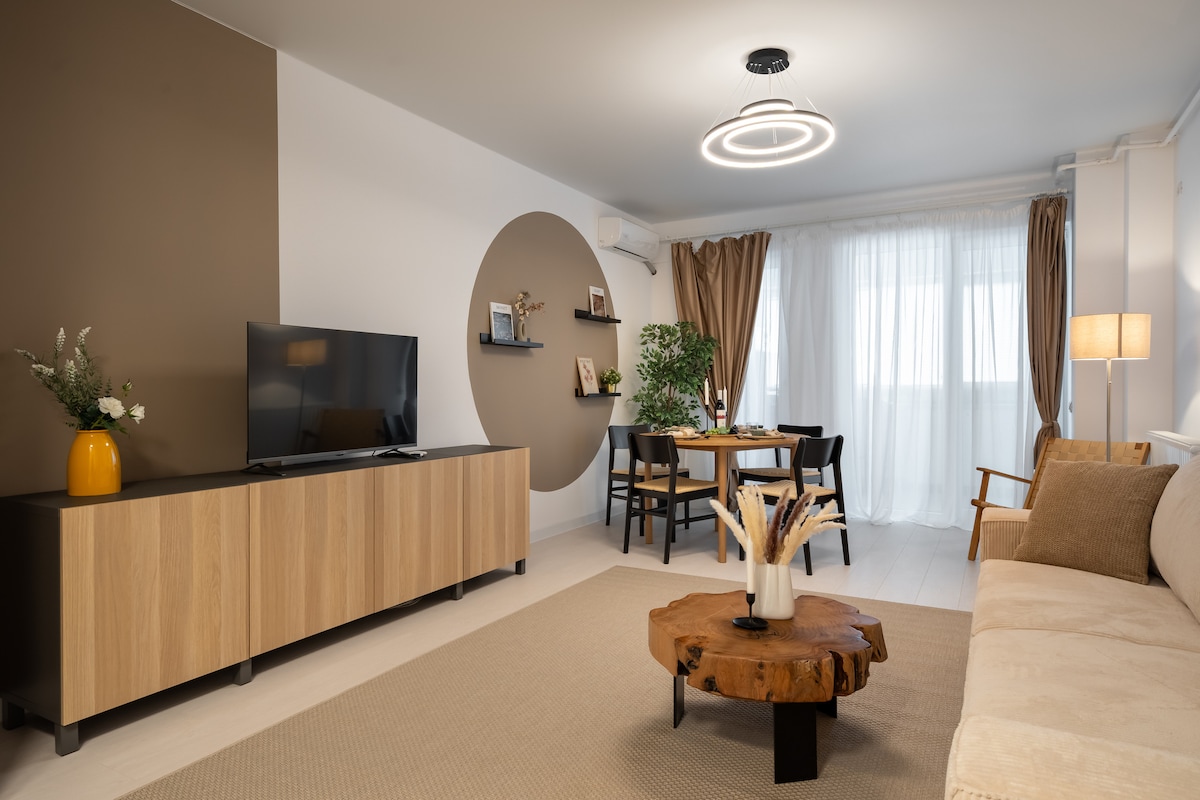 Quédate en nuestro nuevo apartamento minimalista en Central Address Residence, un complejo seguro construido en 2024. Diseñado con una elegante mezcla de gris, negro y verde, ofrece una acogedora sala de estar, una cocina totalmente equipada y un dormitorio cómodo. Disfruta de Internet de alta velocidad, dos televisores inteligentes grandes y una cerradura inteligente para facilitar el check-in. Situado a solo 3 km del casco antiguo y a 2 km del Palacio del Parlamento, es el lugar perfecto para explorar Bucarest mientras disfrutas de la comodidad y el estilo.