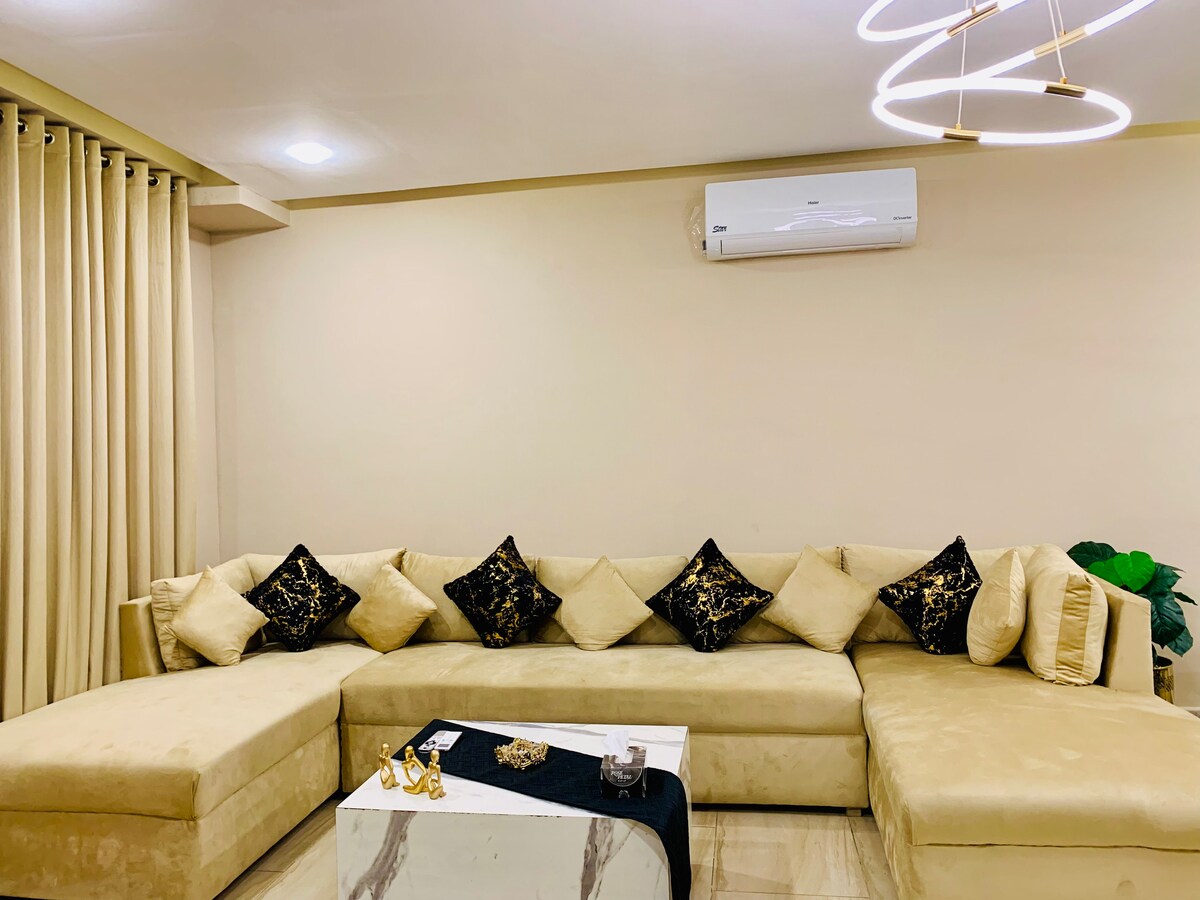 Disfruta de la comodidad y el estilo en nuestro apartamento de 1 dormitorio decorado por diseñadores en Bahria Town Phase 8, Islamabad/Rawalpindi. Ideal para parejas y familias, cuenta con una cama tamaño king, un elegante sofá, una televisión inteligente con Netflix y un moderno baño. Disfruta de una vista privilegiada desde el quinto piso, acceso rápido al ascensor y un acogedor espacio de estar perfecto para relajarte o entretenerte.