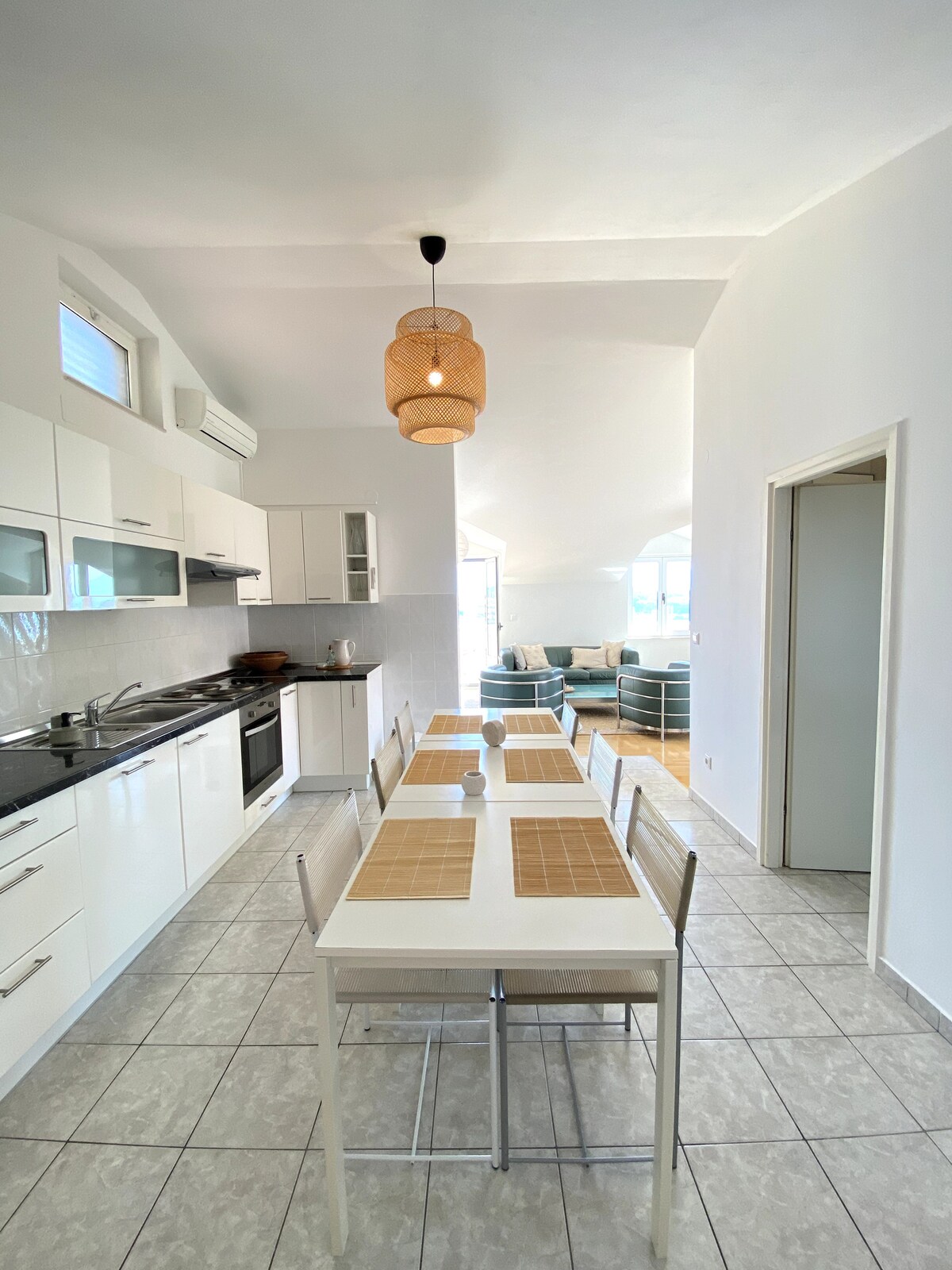 ¡Precioso ático con vistas espectaculares! Reservación disponible mínimo de 7 noches, de sábado a sábado (máximo 21 noches). Precioso ático de cuatro (4) estrellas (80 m2). Impresionantes vistas al mar desde la sala de estar y (por supuesto) el balcón delantero. Observa el amanecer detrás de las montañas Biocovo o la puesta de sol desde el mismo lugar y observa cómo las montañas se vuelven rojas. ¡Un departamento fantástico que te dará ese toque adicional a tu estancia vacacional! ¡Un hogar lejos de casa!
