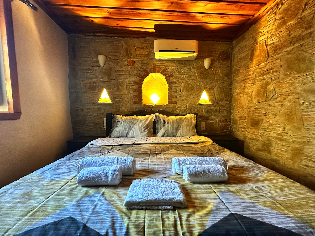 Ubicada tanto muy cerca del centro como en una calle tranquila y silenciosa, esta pequeña casa de piedra de 1+0 tiene un dormitorio, una pequeña zona de cocina, un inodoro y un baño. Es un hermoso pueblo famoso por los vinos de Sirince y las carreteras están cubiertas de piedras según la textura del pueblo. Está muy concurrido en temporada, por lo que es posible que tengas que estacionar tu vehículo en un estacionamiento de pago y llegar a la casa a pie. Hay dos caminos diferentes al caminar hasta la casa; uno tiene una pendiente bastante empinada, la otra carretera tiene poca pendiente.