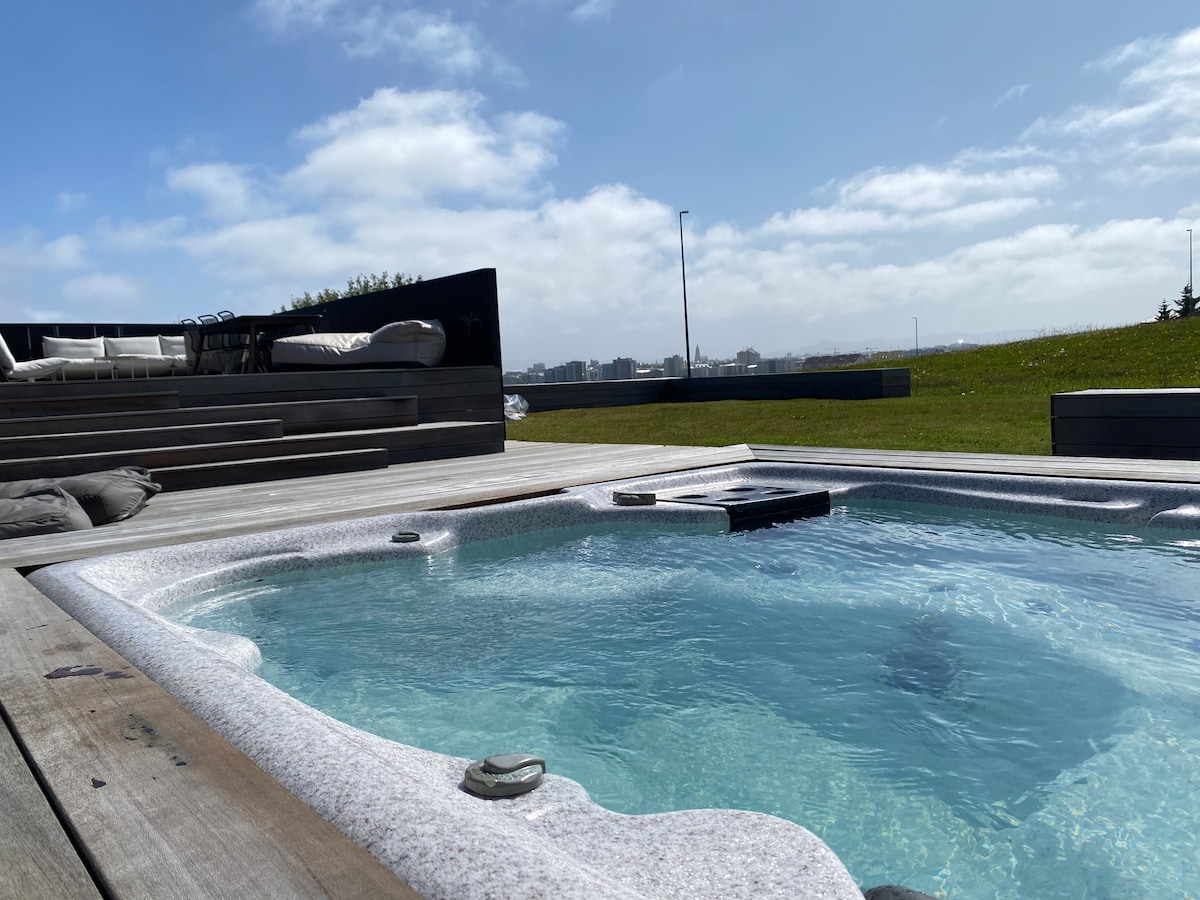 Tu familia estará cerca de todo en este tranquilo y céntrico vecindario, a solo 30 minutos a pie del centro de Reikiavik. La zona es segura y apta para niños, con una piscina local, la orilla del mar y senderos cercanos. Disfruta de nuestro jardín recientemente renovado con una gran cama elástica, un mini campo de fútbol y una terraza de 100 metros cuadrados con jacuzzi, diversión para todas las edades. La espaciosa casa de dos plantas tiene 5 dormitorios y capacidad para 10 personas cómodamente. Perfecto para familias o grupos que buscan una estancia relajante e inolvidable.