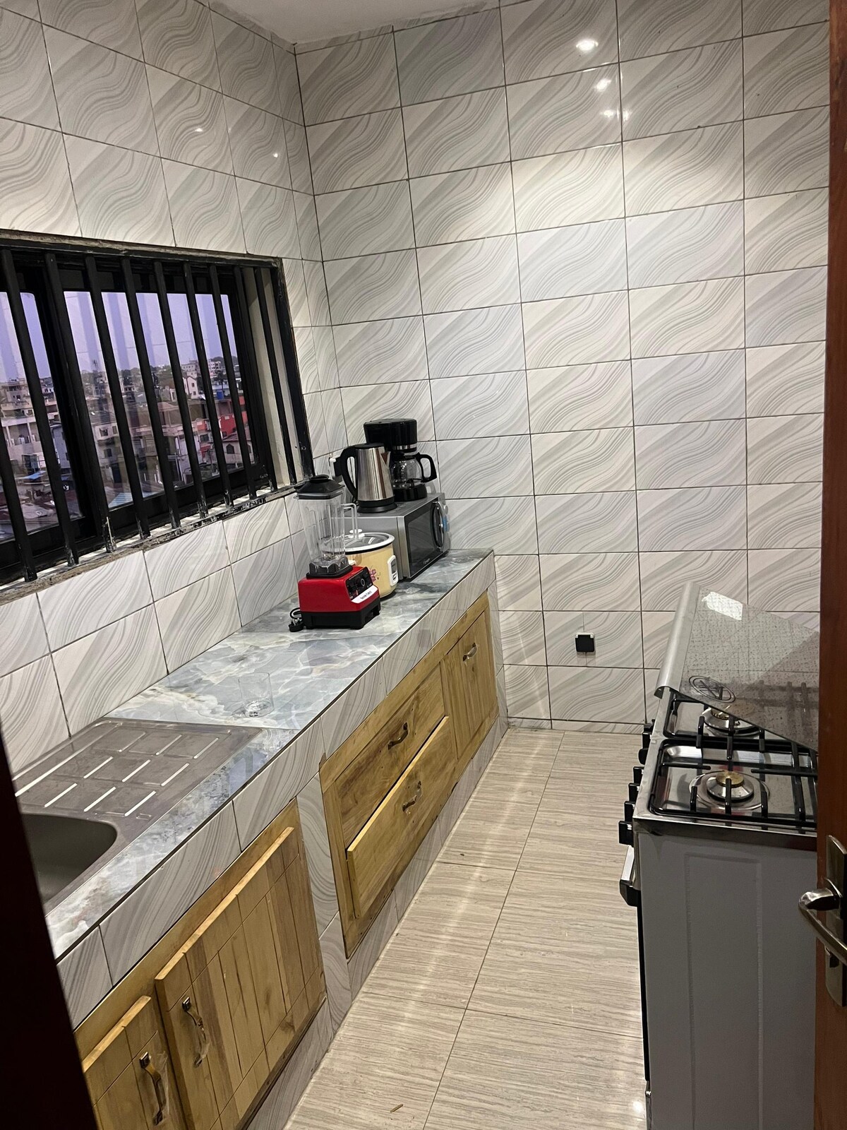 Cet hébergement élégant et parfait pour vos courts et longs séjours est situé au 4ème étage d'un immeuble à 6 étages sans ascenseur. Situé à 15min de l'aéroport de Cotonou, le bien se trouve à proximité du centre-ville avec des commerces de proximité à 5 minutes à pied. Vous retrouverez un séjour très lumineux meublé, une cuisine équipée et 1 chambre décorée avec 1 salle de douche et WC intégré. Appartement de 2 personnes avec lit d’appoint disponible pour un enfant et toilette visiteur.