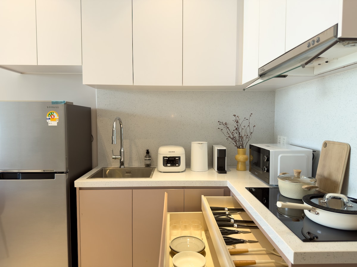 Estrictamente para no fumadores. Fumar conducirá a ozono tmt, costo para el fumador * Recepción 24/7 * Impresionante vista al río * Wifi (7-10 Mbps) * gimnasio y sala de juegos gratuitos * Gran piscina al aire libre estilo MBS en S'pore@L44 * Nueva unidad de 62 m² con instalaciones completas: refrigerador, lavadora, TV de 55", aire acondicionado, estufa. * Minimercado abajo, 3 mercados a 5 minutos a pie (incluido Lucky Mart) * Restaurantes cercanos (chino, jemer, occidental y halal) - Solo cocina ligera (desayuno o comidas sencillas). Por motivos de limpieza, no se permite la cocina pesada o aceitosa.