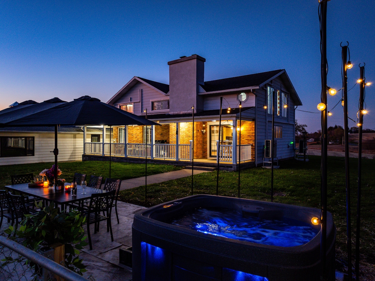 ¡Relájate en una gran casa con piscina Y jacuzzi en el corazón de la región vinícola de Finger Lakes en el moderno pueblo de Trumansburg! ¡Hay 4 dormitorios grandes, una gran habitación, comedor, cocina grande, cocina americana, solárium, porche, terrazas y más! Disfruta de la piscina y el jacuzzi, siéntate en el gran porche o en las cubiertas. A 10 minutos a pie de la ciudad para comer y comprar. Las rutas de senderismo y las bodegas están cerca. A 8 millas de Ithaca, a 4 millas de Taughannock. Se permiten 1-2 perros por una tarifa adicional. ¡Pregunta!